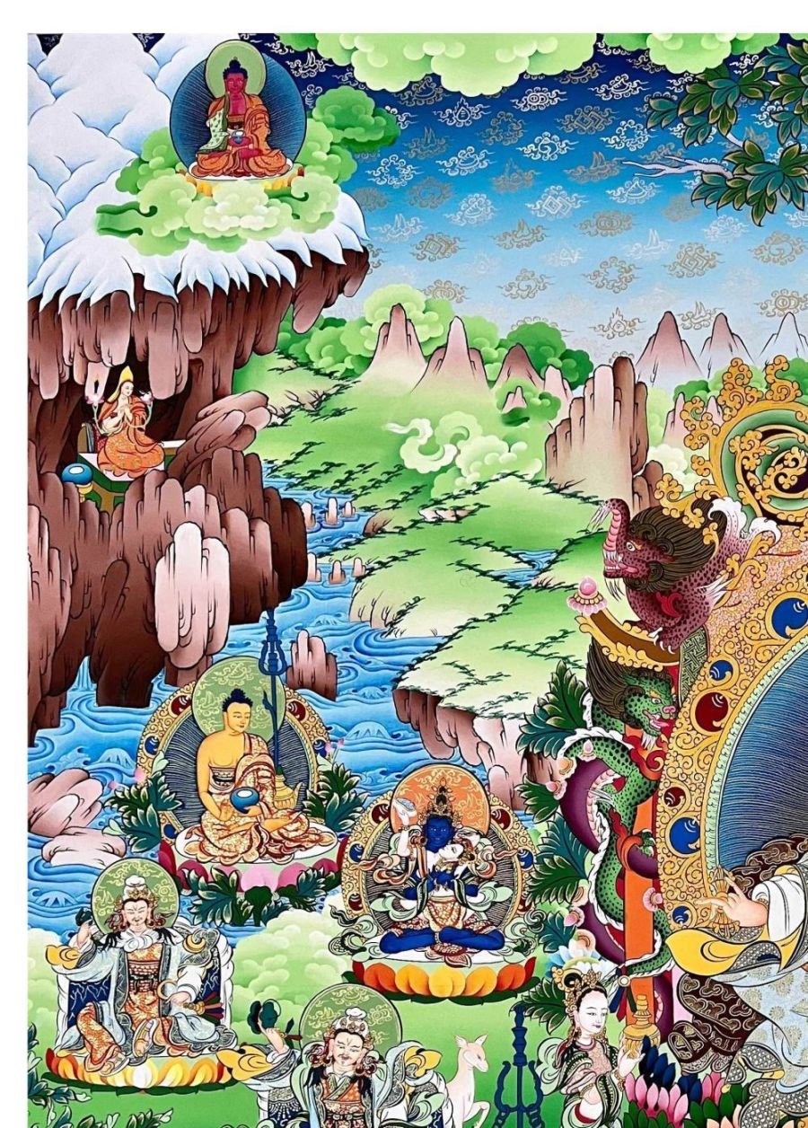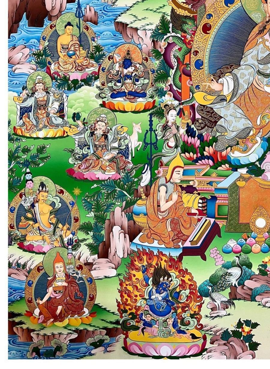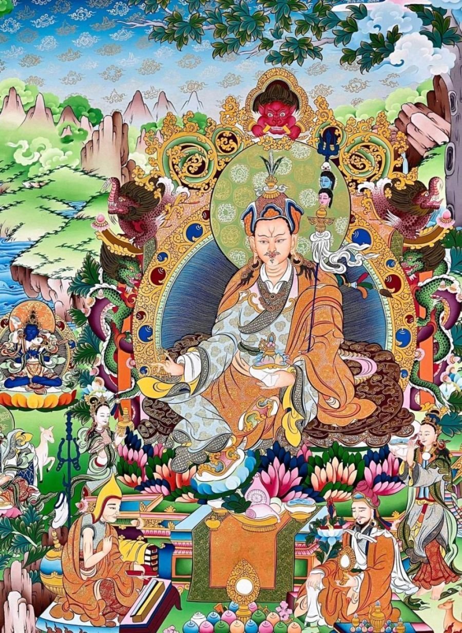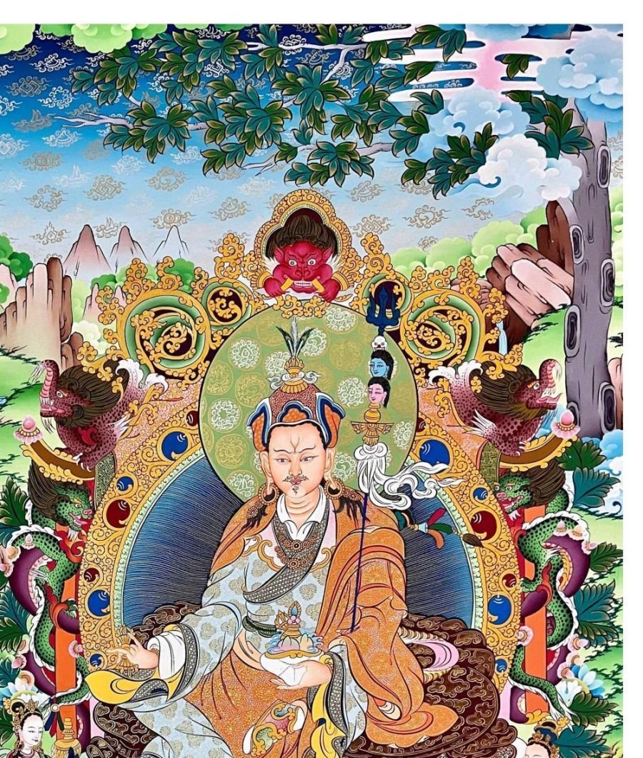 Padmasambhava Thangka, Tibetan Buddhist Art, Hand Painted, Real Gold , The lotus-born master, wisdom beyond time