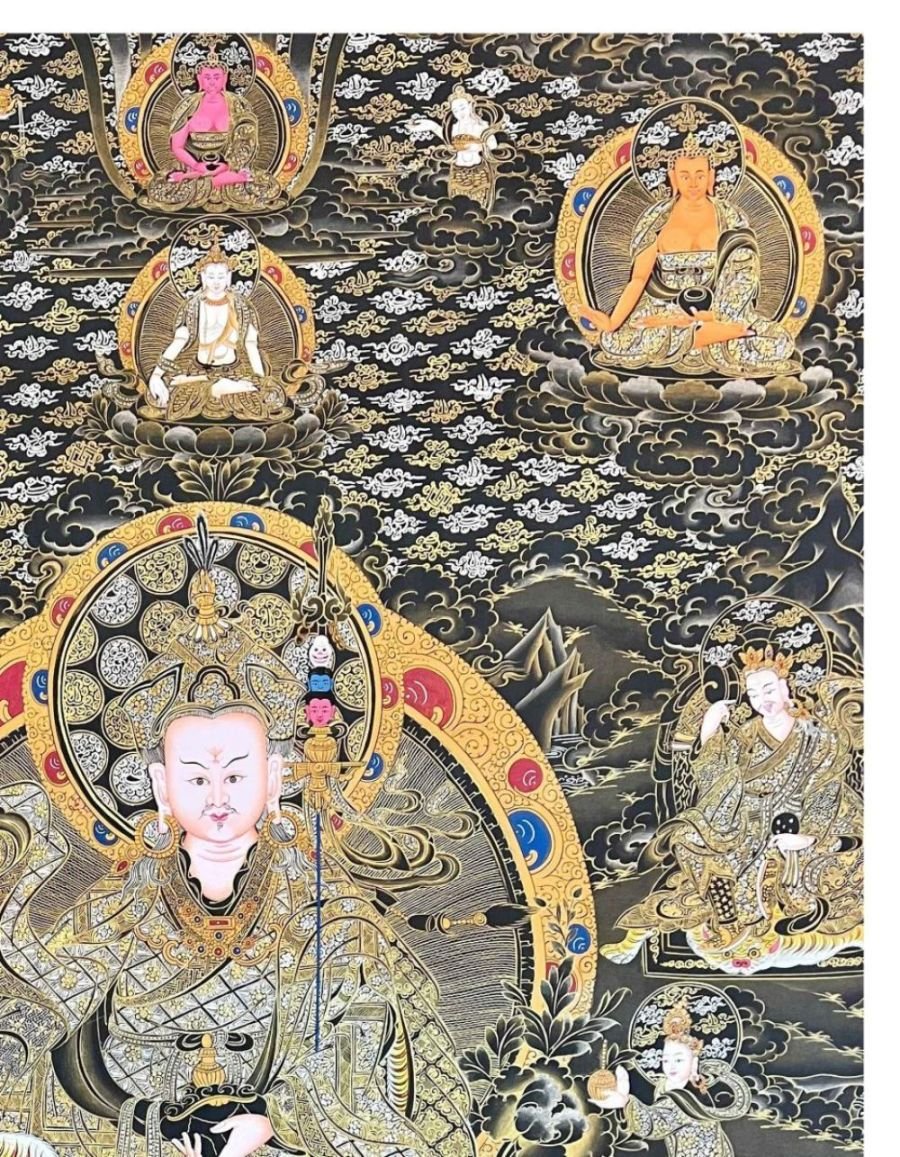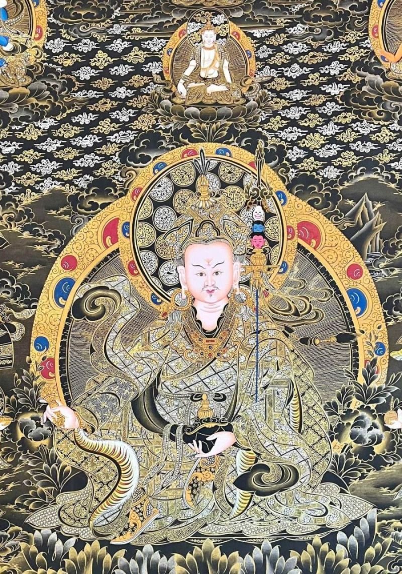 Padmasambhava Thangka, Tibetan Buddhist Art, Hand Painted, Real Gold , The lotus-born master, wisdom beyond time