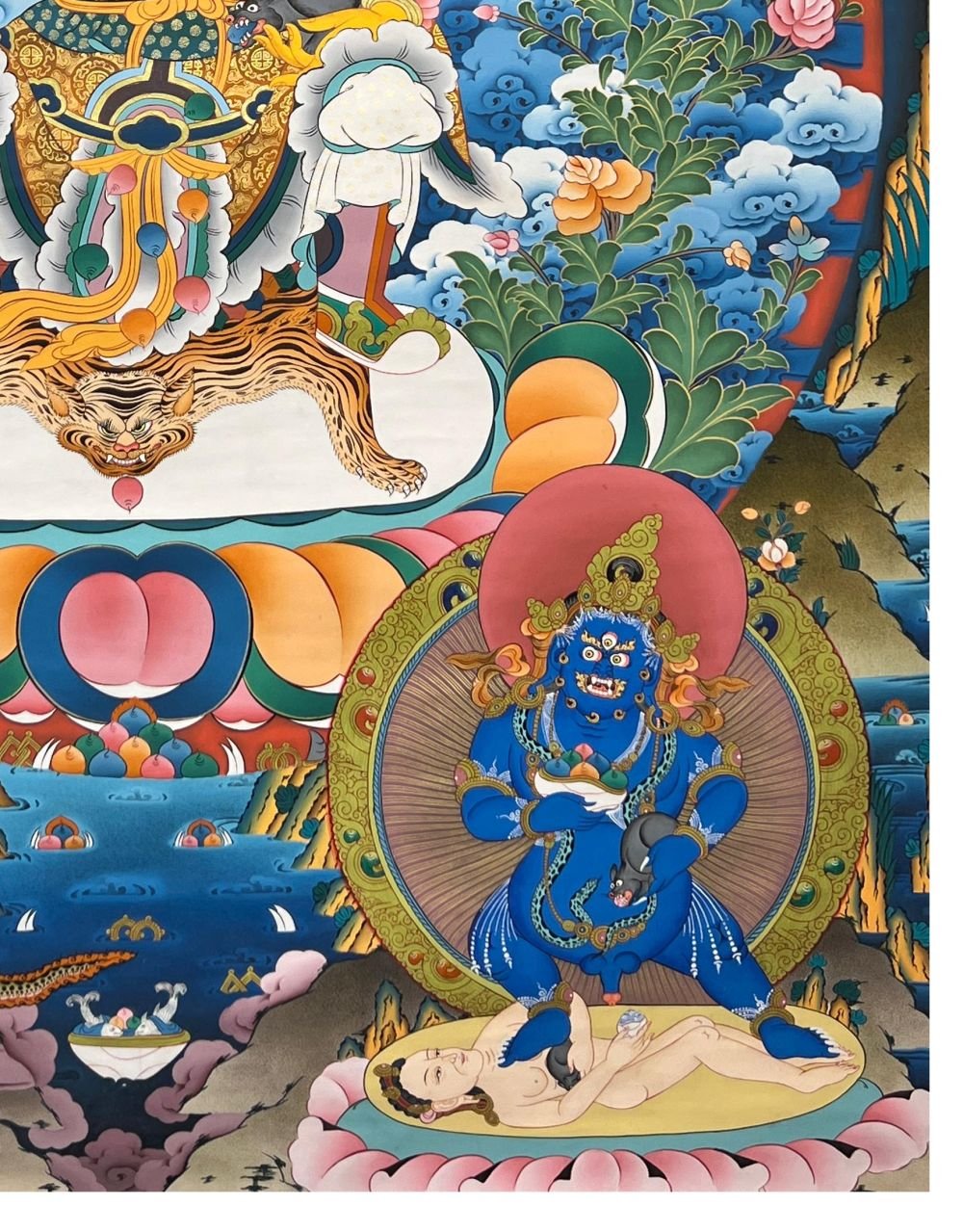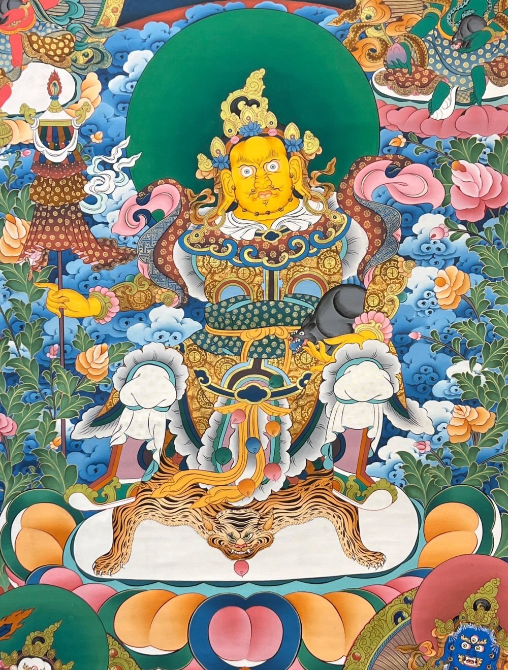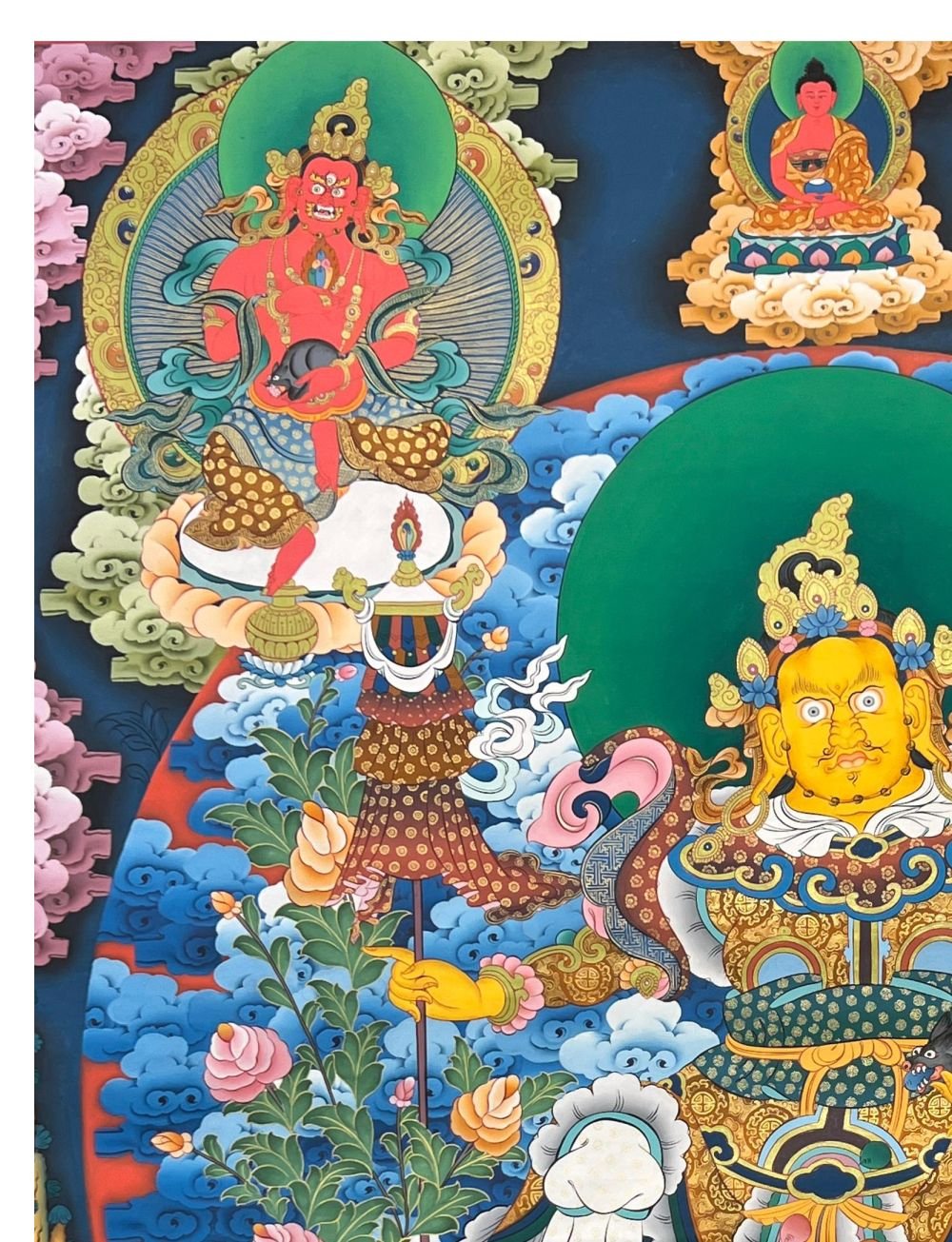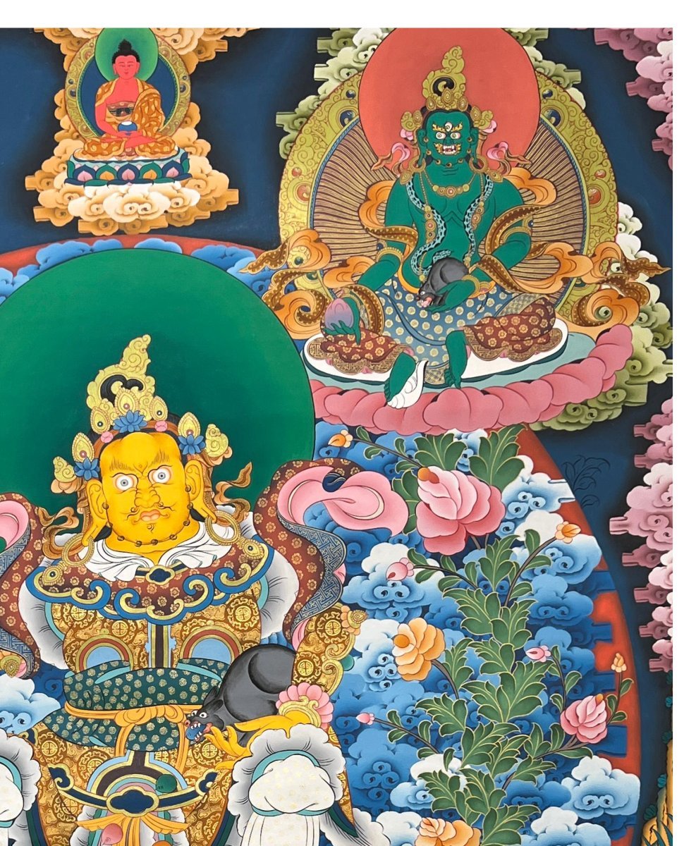 Five Jambhala Thangka, Tibetan Buddhist Art, Hand Painted, Real Gold , Five Wealth Deities, Bringing Prosperity, Fortune, and Generosity