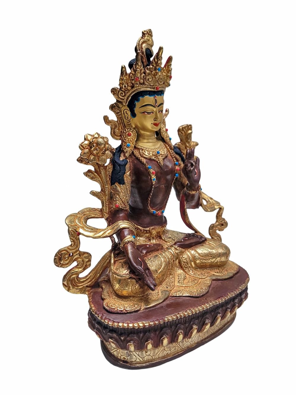 White Tara, Buddhist Handmade Statue, Partly Gold Plated with Face Painted , Goddess of longevity, healing, and serene compassion
