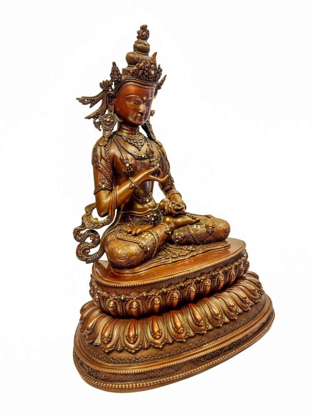 By imitating the natural aging process, the chocolate color antique patina lends an air of authenticity and vintage charm to the Vajrasattva. This carefully crafted finish ensures that the patina remains intact for an extended period, offering longevity and resistance to wear. The result is a unique piece that captures the essence of a time-worn copper statue, evoking a sense of history and artistic heritage.