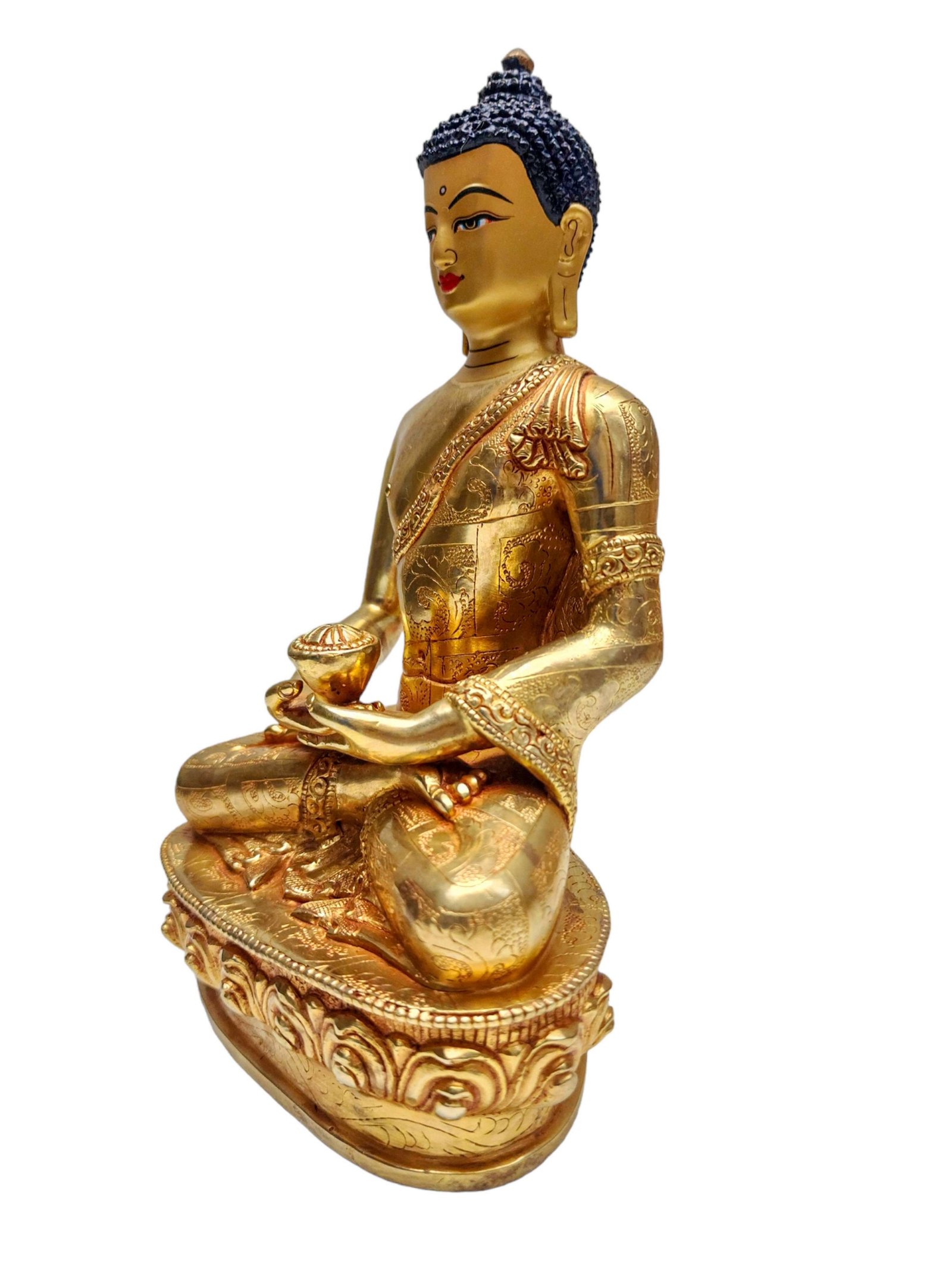 Amitabha Buddha, Buddhist Handmade Statue, Gold Plated with Face Painted , Buddha of Infinite Light: Symbol of Boundless Compassion