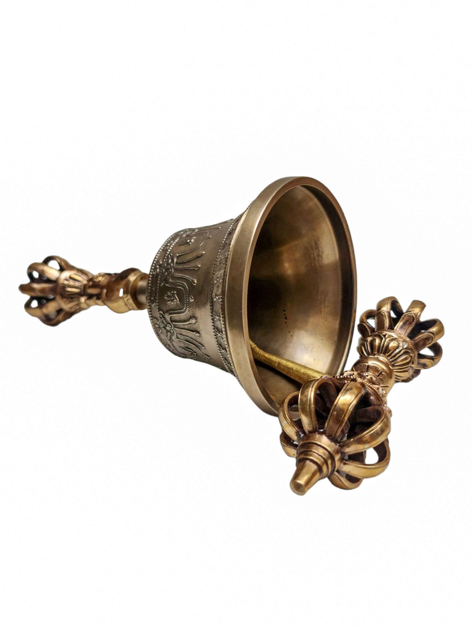 : Dehradun Bell and DorjeThe bell and dorje crafted in Dehradun, India by Tibetan artisans are renowned for their exceptional quality sound and exquisite traditional designs. These bells and dorjes are meticulously handcrafted using age-old techniques passed down through generations, resulting in a product of outstanding craftsmanship.