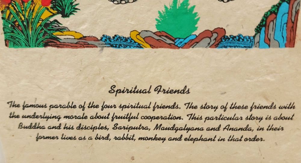 Four Friends, Buddhist Scroll, Made In Lokta Paper, Screen Printed, and Hand-painted, Spiritual Friends , Symbol of Harmony, Cooperation, and Mutual Support