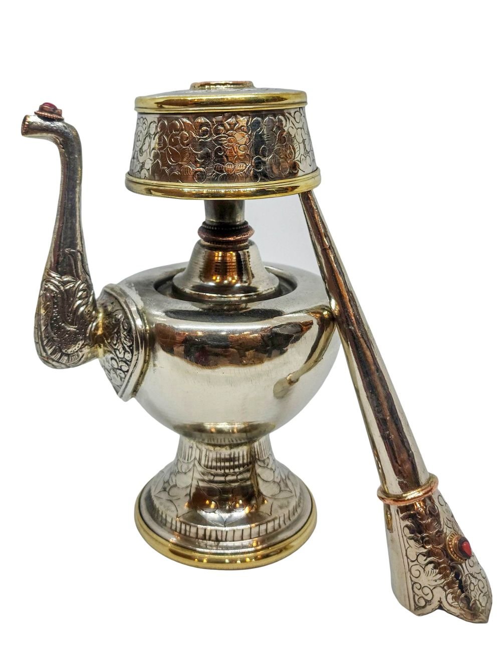 Bhumpa- Bhumba, A Buddhist Handmade Copper offering Bowl Set, Silver Plated