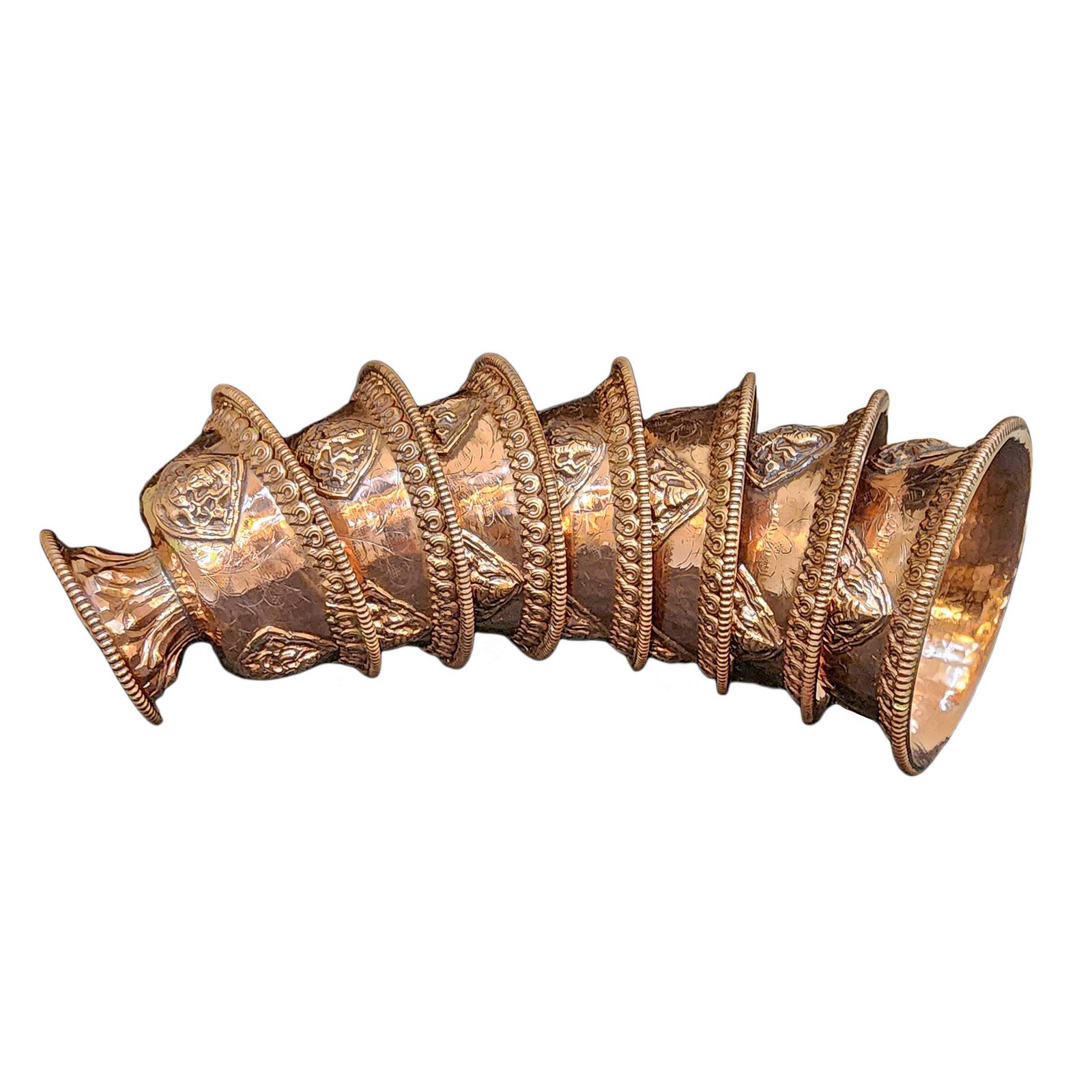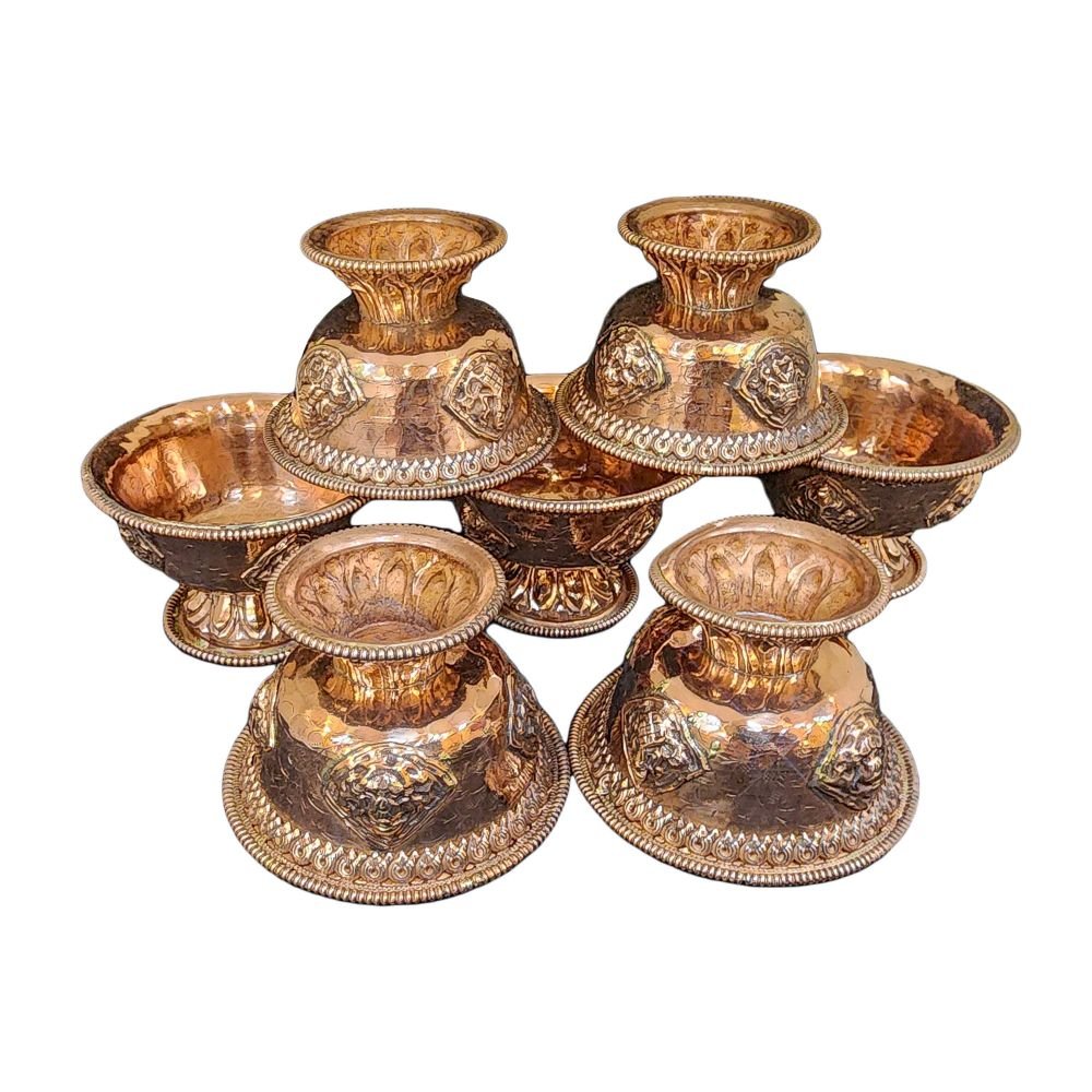 Copper offering Bowl with Stand and Hand Carving 7 Pcs Set |