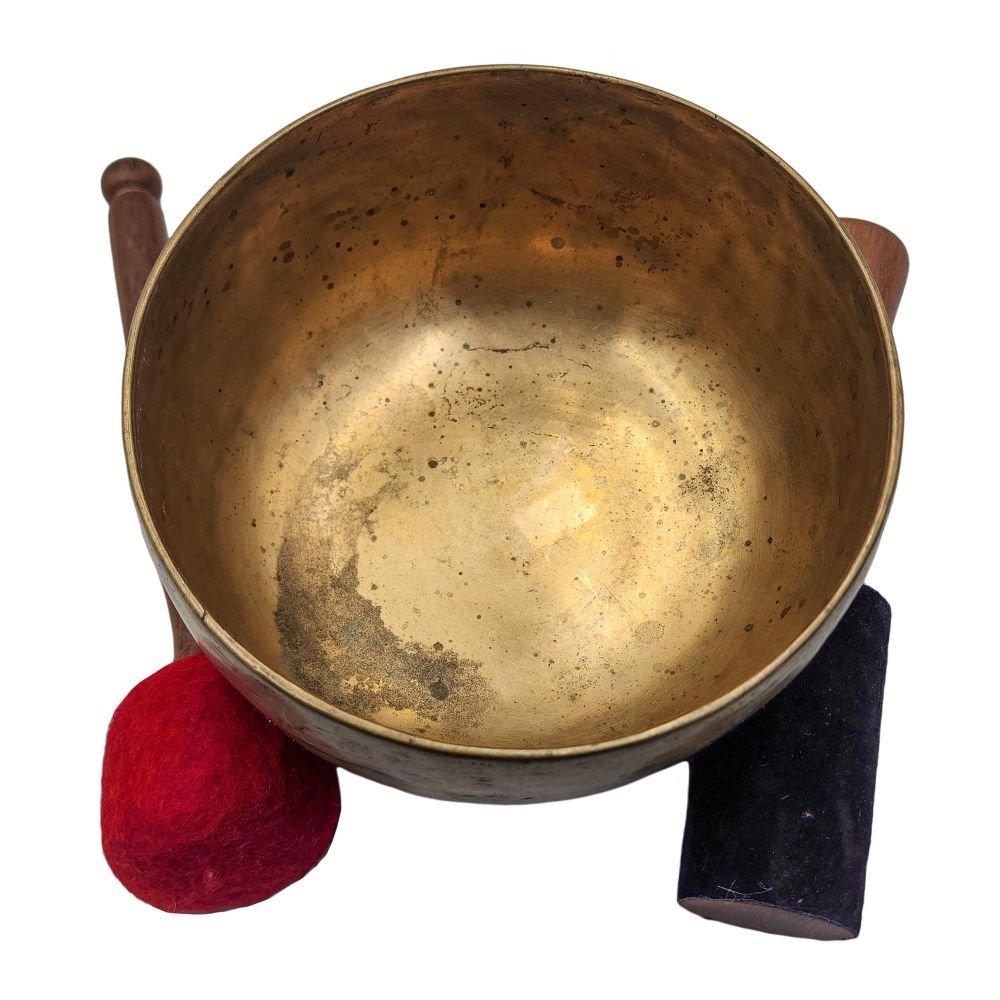 Antique Tibetan singing bowls like this one are highly sought after for their remarkable quality sound, rich tones, and unique physical characteristics. Our old Tibetan singing bowls are hand-picked by a stunning and superior collection of antique bowls from Kathmandu. These bowls are one-of-a-kind with gorgeous signs of age and wear that show and sing beautifully. Read More
