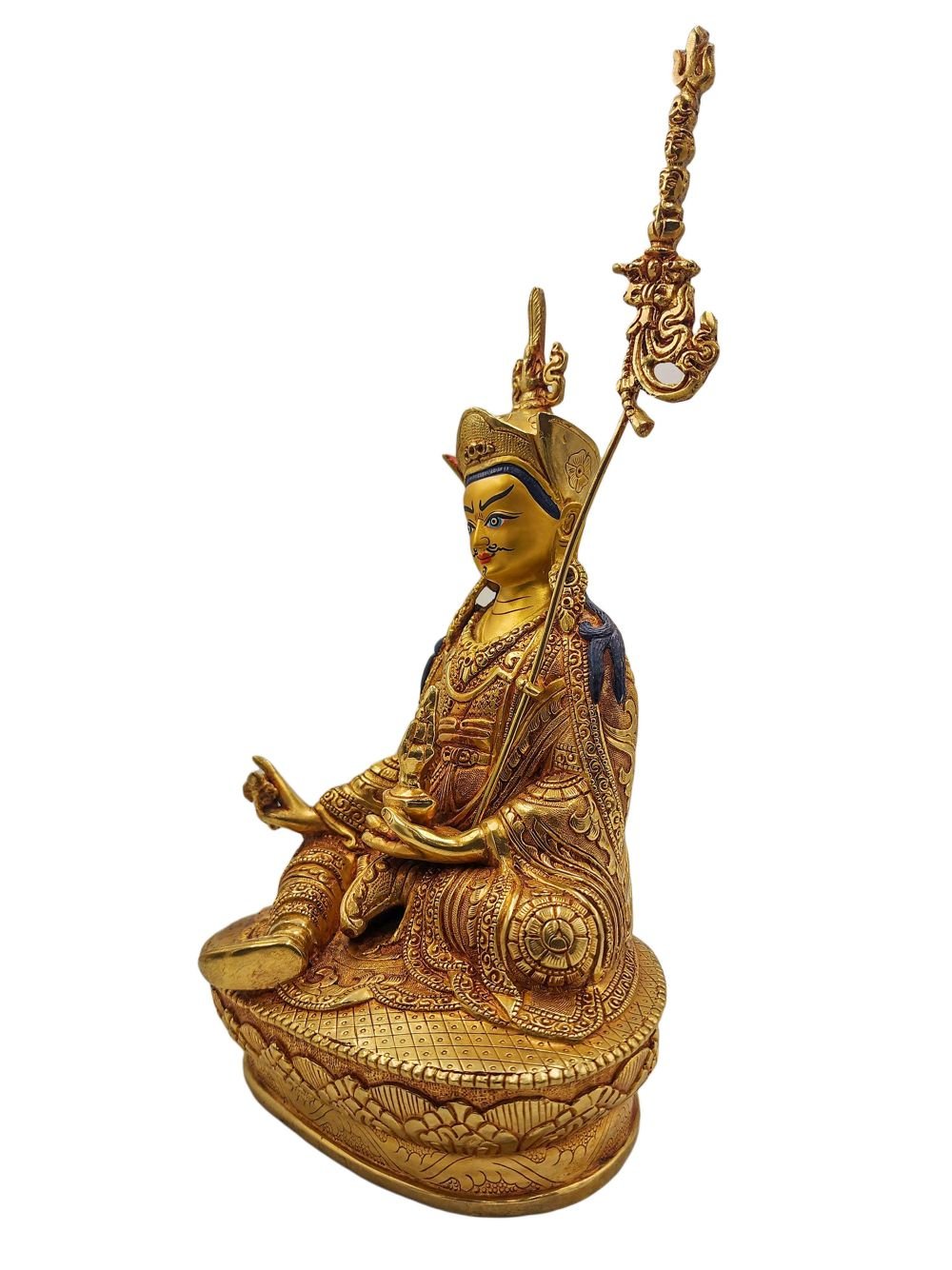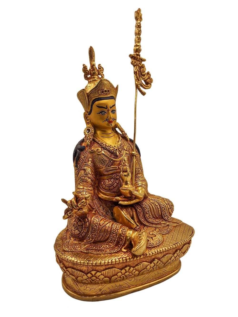 Padmasambhava, Buddhist Handmade Statue, Gold Plated and Face Painted , The lotus-born master, wisdom beyond time