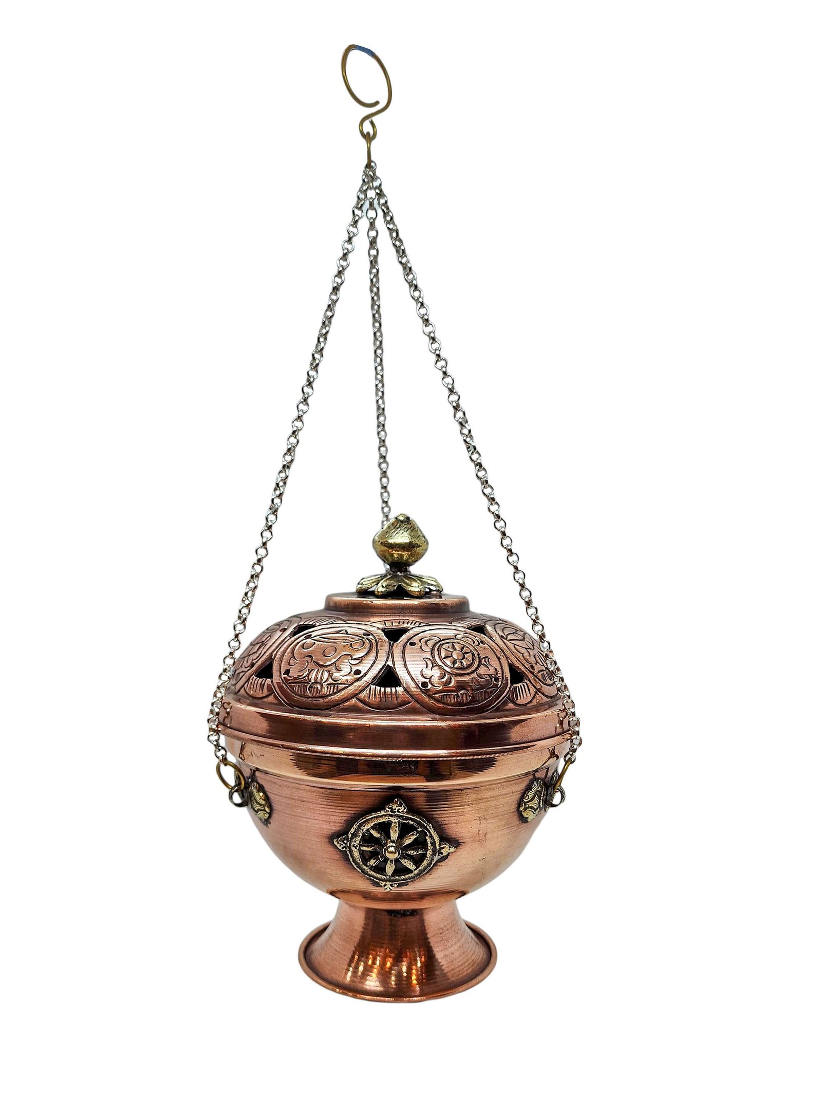 Sang Phulpa Incense Burner of Copper with Deep Carving, Hanging & Swinging, High Quality, Sangbur |