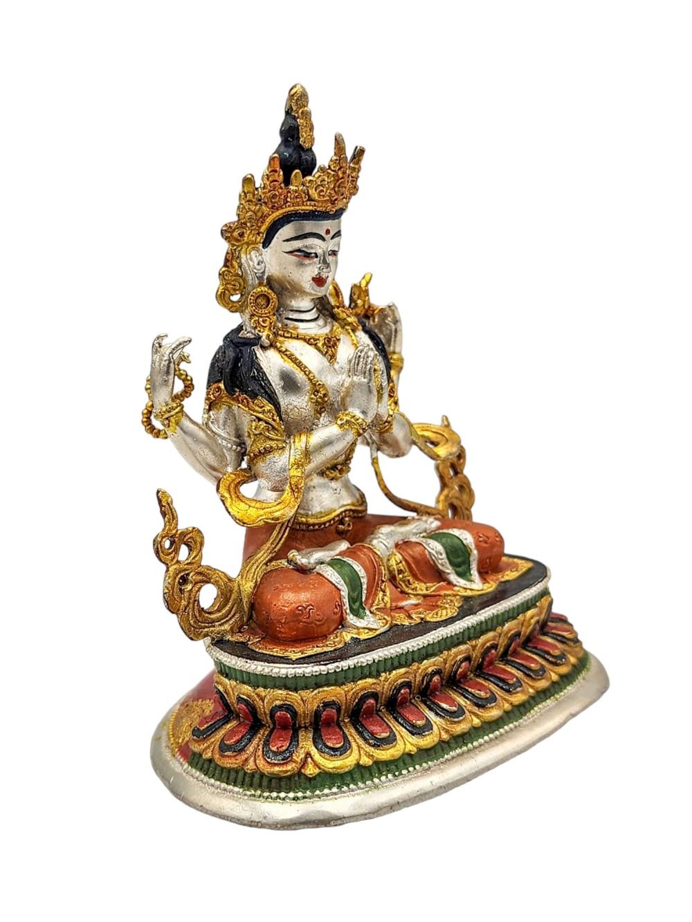 Chenrezig, Buddhist Miniature Statue, High Quality, Partly Gold Plated, Traditional Color Finishing, High Quality , Bodhisattva of Compassion, Protector of All Beings