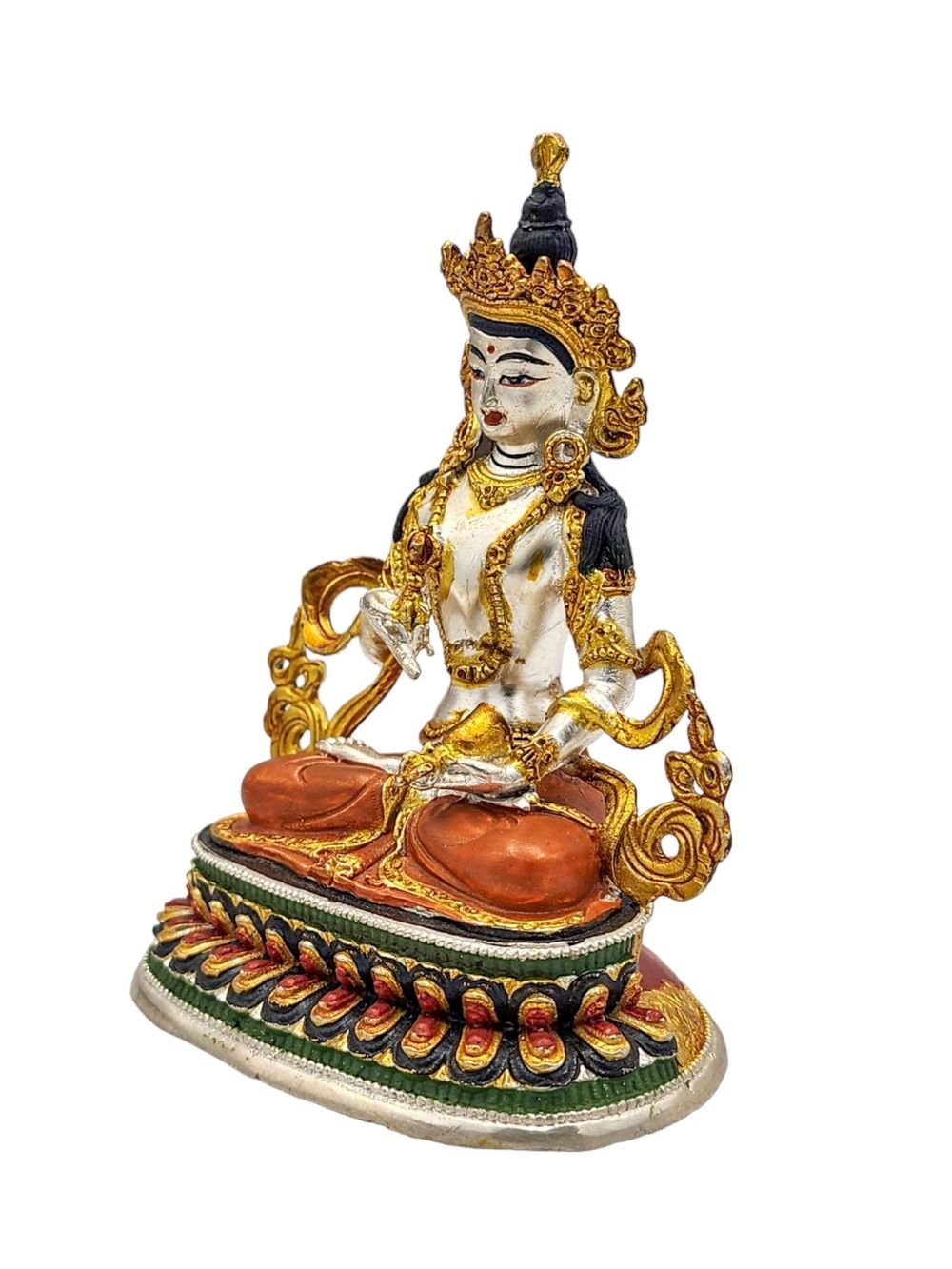 Vajrasattva, Buddhist Miniature Statue, High Quality, Partly Gold Plated, Traditional Color Finishing, High Quality , Purifier of karma, embodying purity and enlightenment
