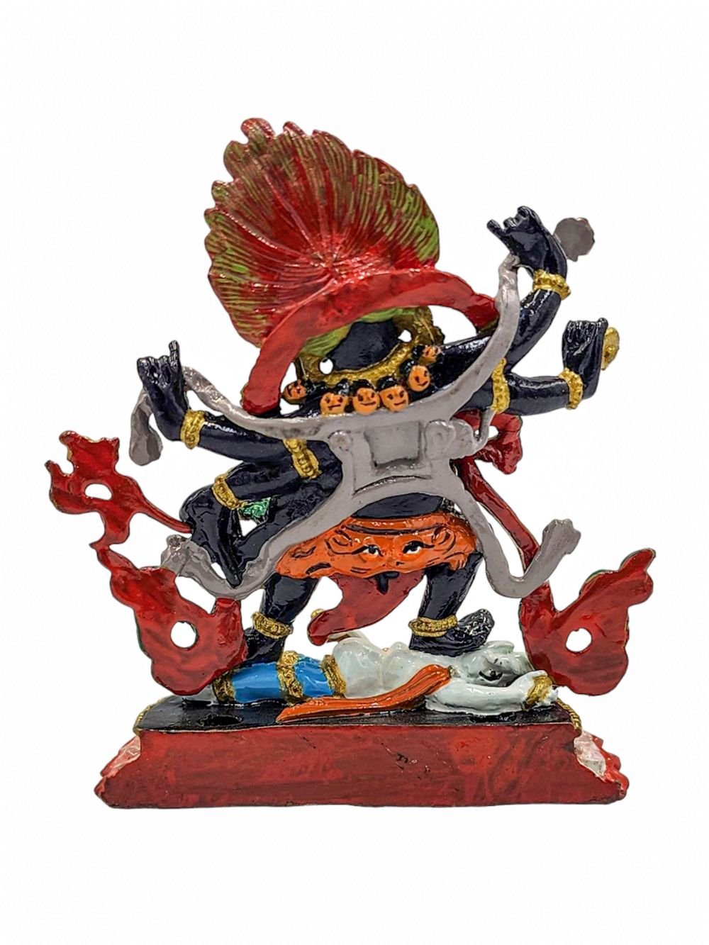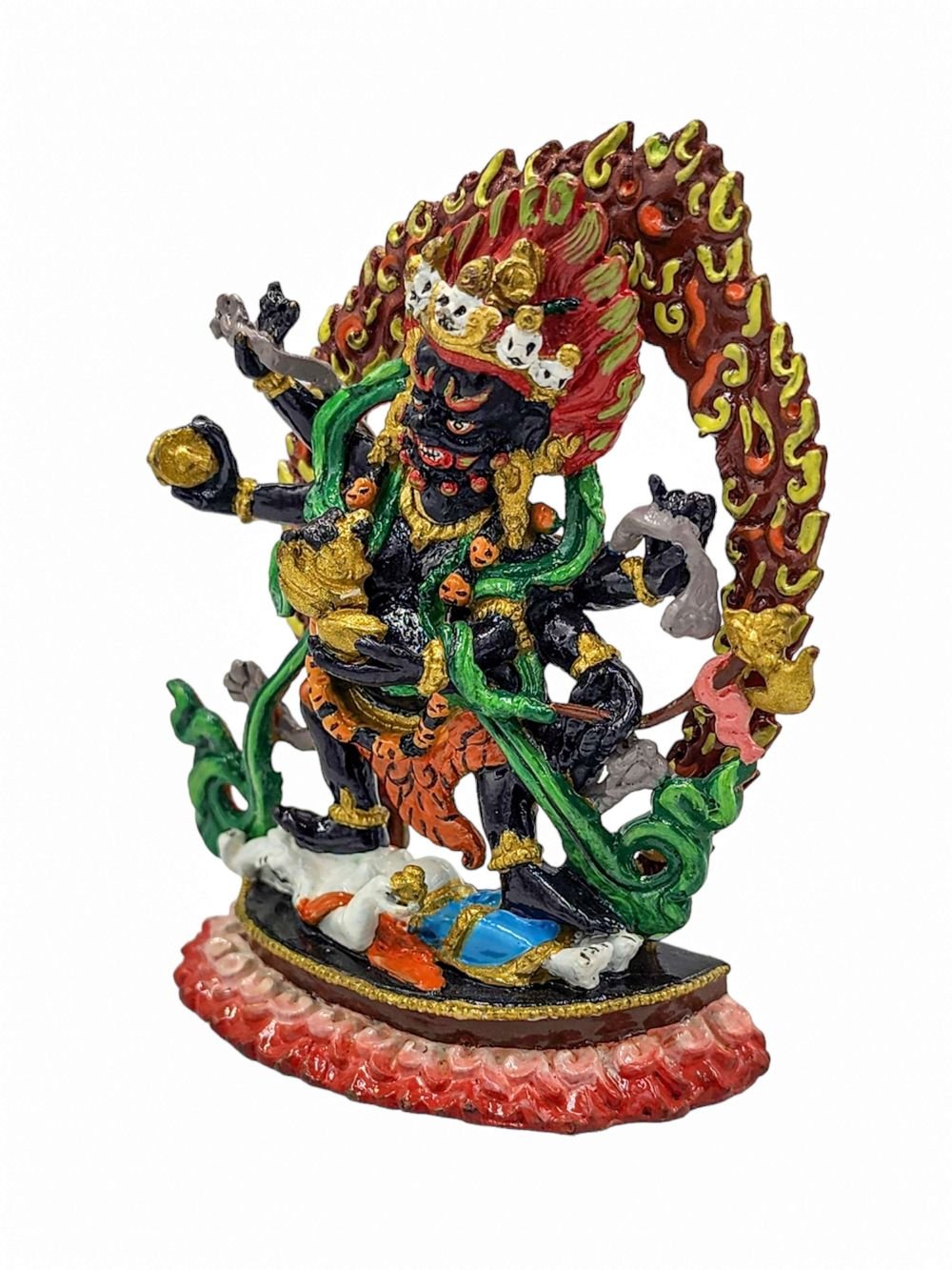 Mahakala Black, Buddhist Miniature Statue, Traditional Color Finishing, High Quality , Fierce protector, destroys obstacles, guards the Dharma
