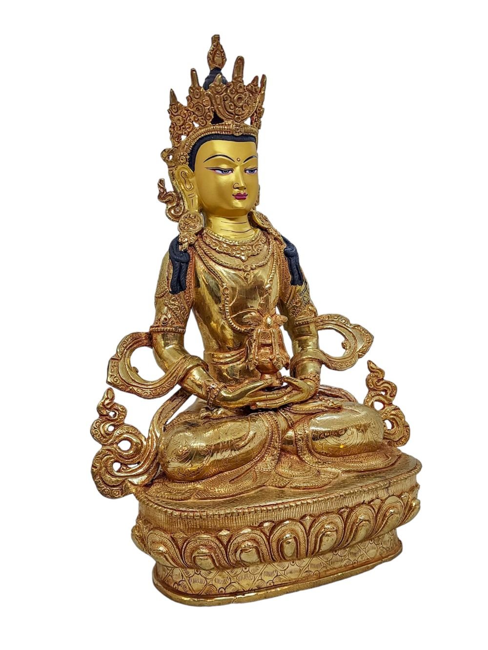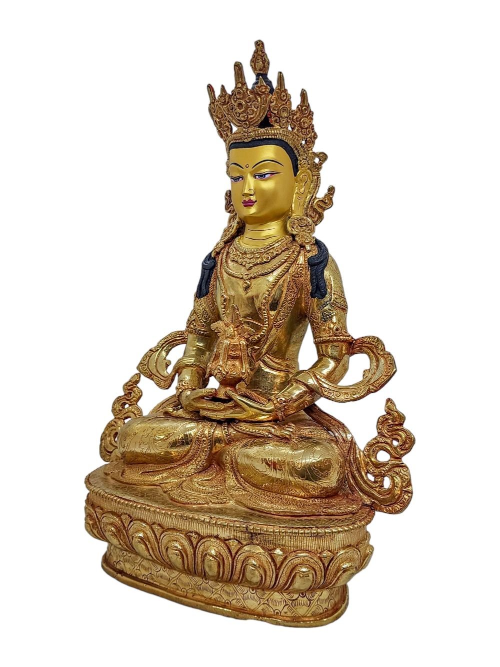 Aparimita, Buddhist Handmade Statue, Gold Plated and Face Painted , Buddha of Long Life, Wisdom, and Spiritual Vitality