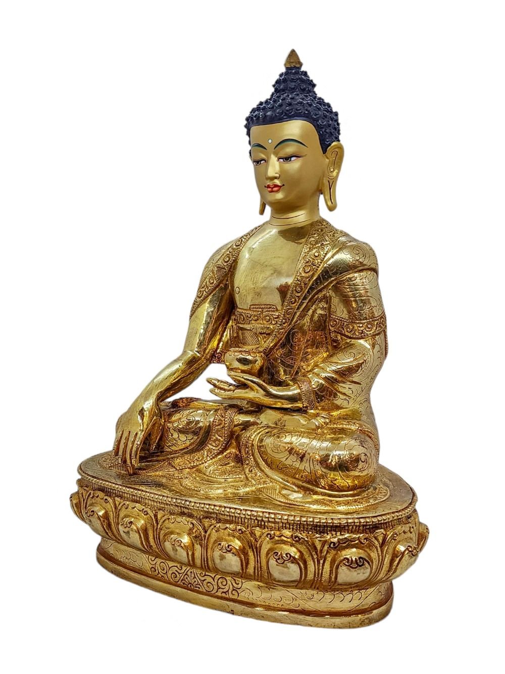 Shakyamuni Buddha, Buddhist Handmade Statue, Gold Plated and Face Painted , The Enlightened One and Teacher of Humanity