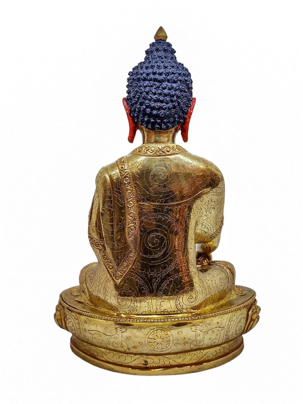 This Shakyamuni Buddha is finished with full gold plating. also known as mercury gold plating or fire gold plating. This traditional technique involves the application of a genuine layer of gold onto the Shakyamuni Buddha. Referred to as mercury gold plating, it is considered the correct and authentic form of gold plating in Nepal. Despite being more expensive than electroplating, this traditional mercury gold plating is gaining popularity again in Nepal. People are drawn to its authenticity, longevity, and the unmatched beauty it brings to the Shakyamuni Buddha. The resurgence of interest in this traditional form of gold plating reflects a growing appreciation for the craftsmanship and cultural heritage of Nepal Read More
