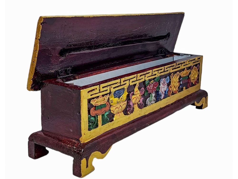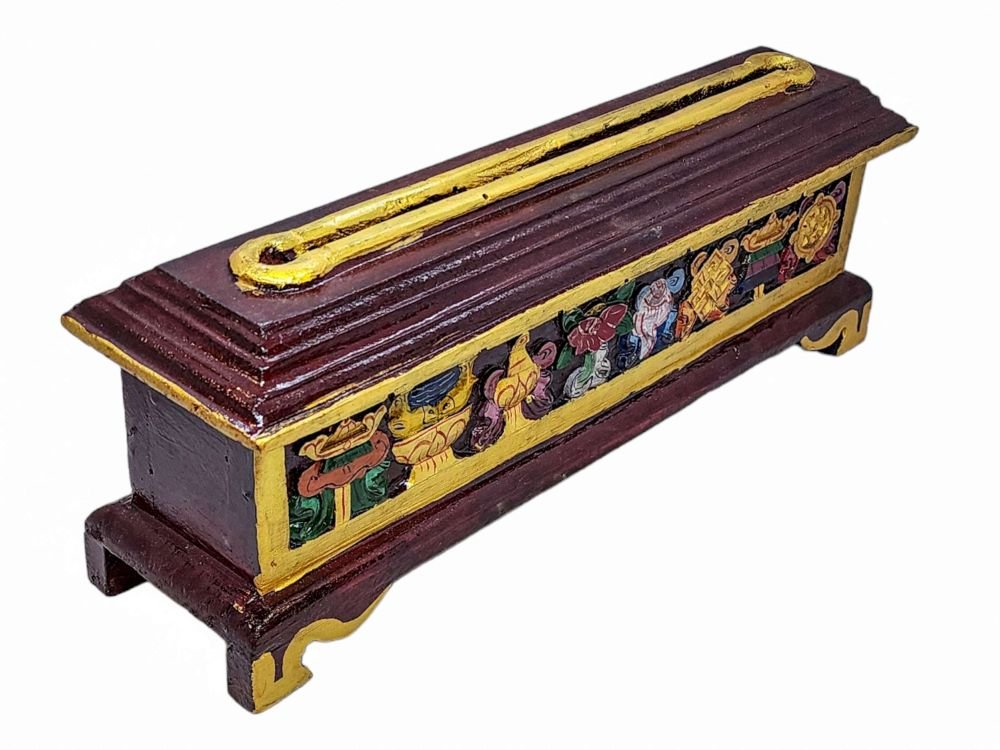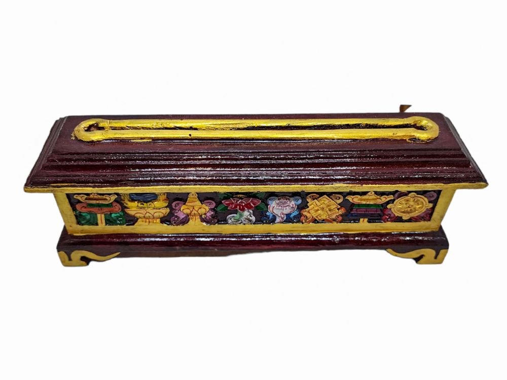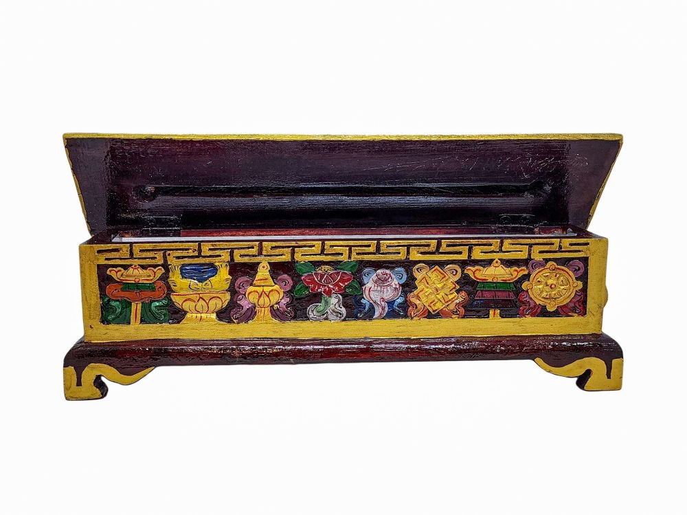 Wooden Incense Burner and Holder, with Ashtamangala, Painted, Hand Carved , Used to purify the surroundings, symbolizing devotion and the sacred nature of offerings