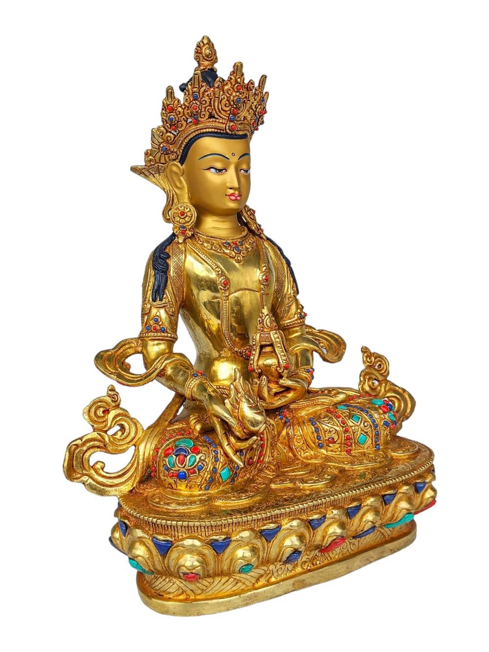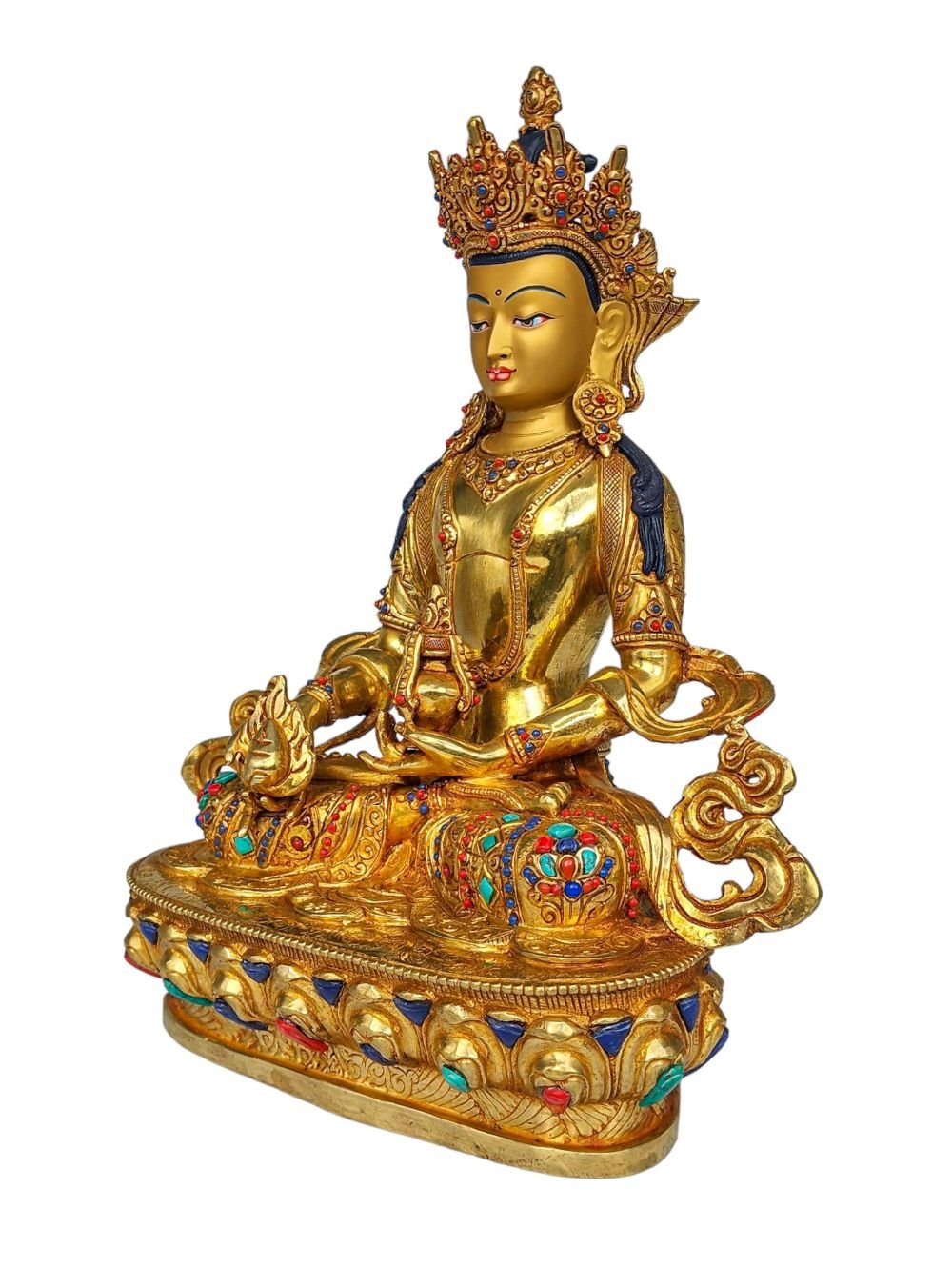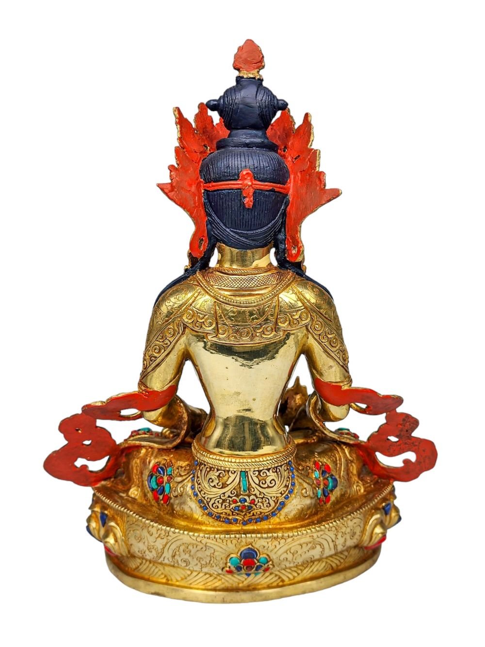 Aparimita, Buddhist Handmade Statue, Face Painted, Gold Plated and Stone Setting, Amitayus , Buddha of Long Life, Wisdom, and Spiritual Vitality