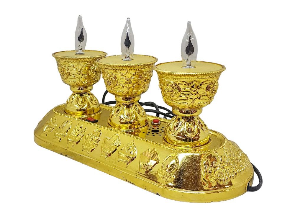 This Butter lamp has been carefully curated to meet local decorative needs in Buddhist homes, and as cherished gifts or decorative accessories for cars and offices. These items, while not handmade, are thoughtfully imported from various countries to ensure quality and aesthetic appeal. They are often crafted from metals and other materials, chosen for their durability and visual charm. Despite their origins, these products serve as meaningful Buddhist ritual items, catering to a growing demand among enthusiasts. We are pleased to include them in our catalog to enhance your spiritual and decorative spaces.