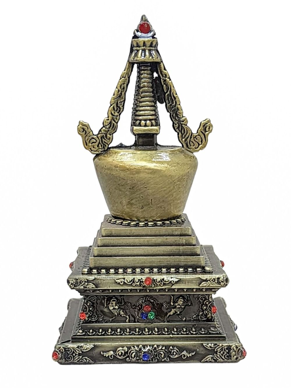 This Stupa has been carefully curated to meet local decorative needs in Buddhist homes, and as cherished gifts or decorative accessories for cars and offices. These items, while not handmade, are thoughtfully imported from various countries to ensure quality and aesthetic appeal. They are often crafted from metals and other materials, chosen for their durability and visual charm. Despite their origins, these products serve as meaningful Buddhist ritual items, catering to a growing demand among enthusiasts. We are pleased to include them in our catalog to enhance your spiritual and decorative spaces.