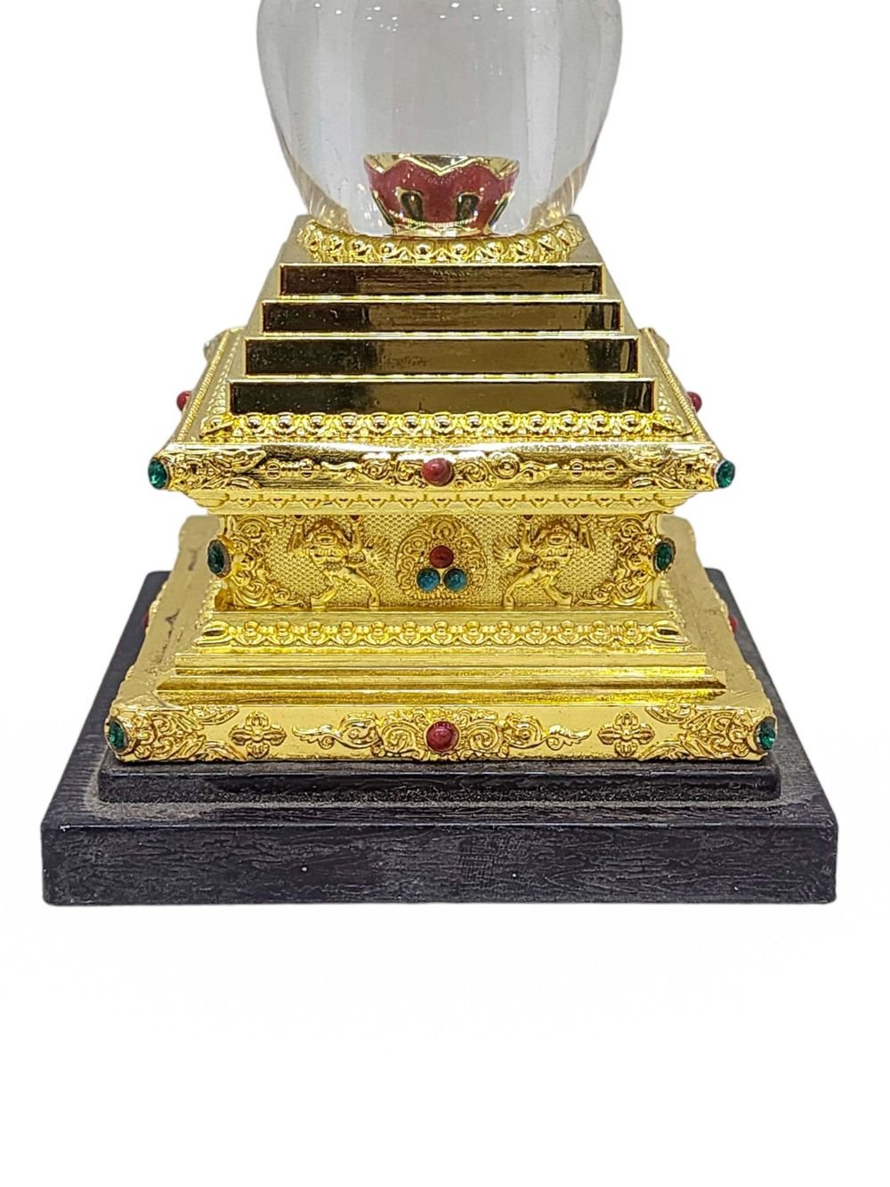 This Stupa has been carefully curated to meet local decorative needs in Buddhist homes, and as cherished gifts or decorative accessories for cars and offices. These items, while not handmade, are thoughtfully imported from various countries to ensure quality and aesthetic appeal. They are often crafted from metals and other materials, chosen for their durability and visual charm. Despite their origins, these products serve as meaningful Buddhist ritual items, catering to a growing demand among enthusiasts. We are pleased to include them in our catalog to enhance your spiritual and decorative spaces.