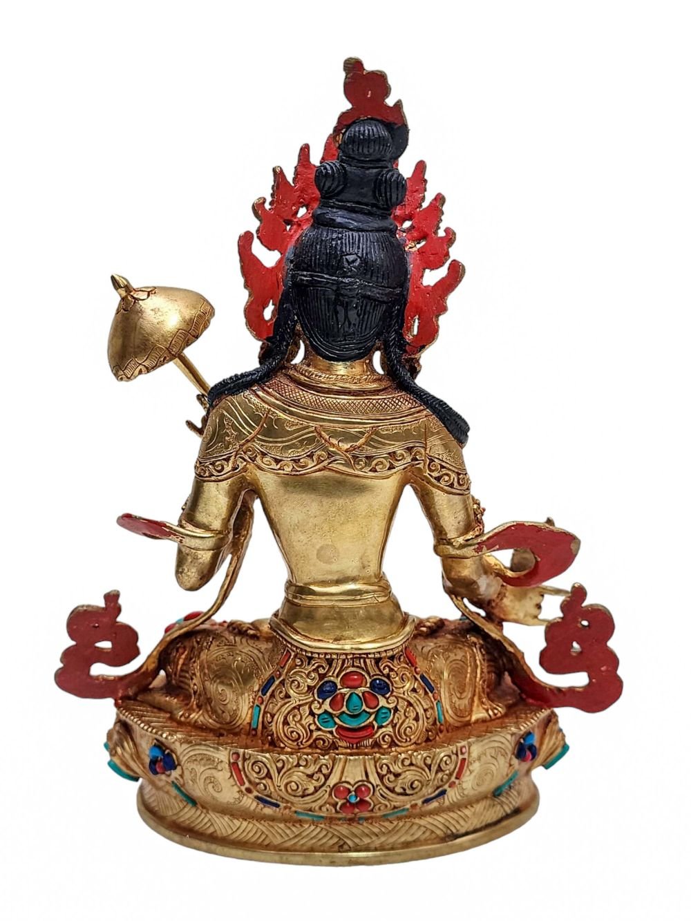 Sitatapatra, Umbrella Tara, Buddhist Handmade Statue, Face Painted, Gold Plated and Stone Setting, Dugar , Protector against harm and negativity
