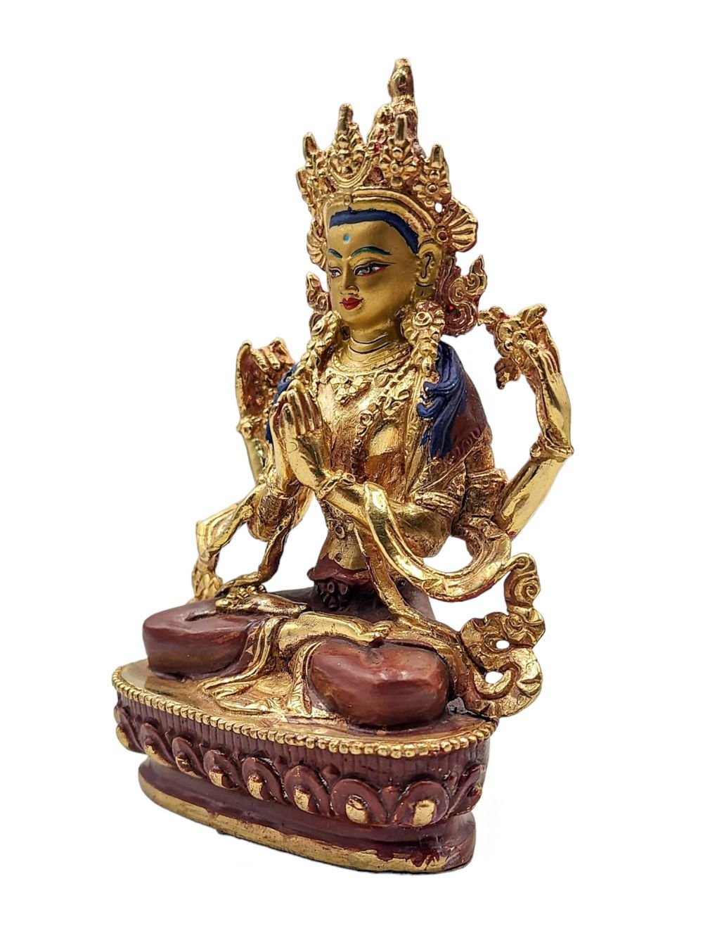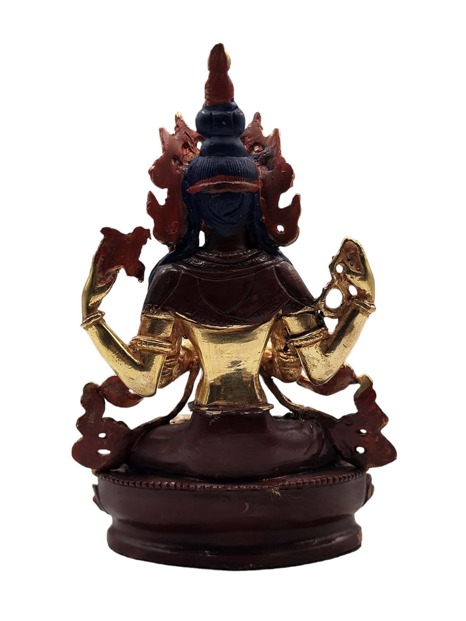 Chenrezig, Buddhist Miniature Statue, Partly Gold Plated, Face Painted , Bodhisattva of Compassion, Protector of All Beings