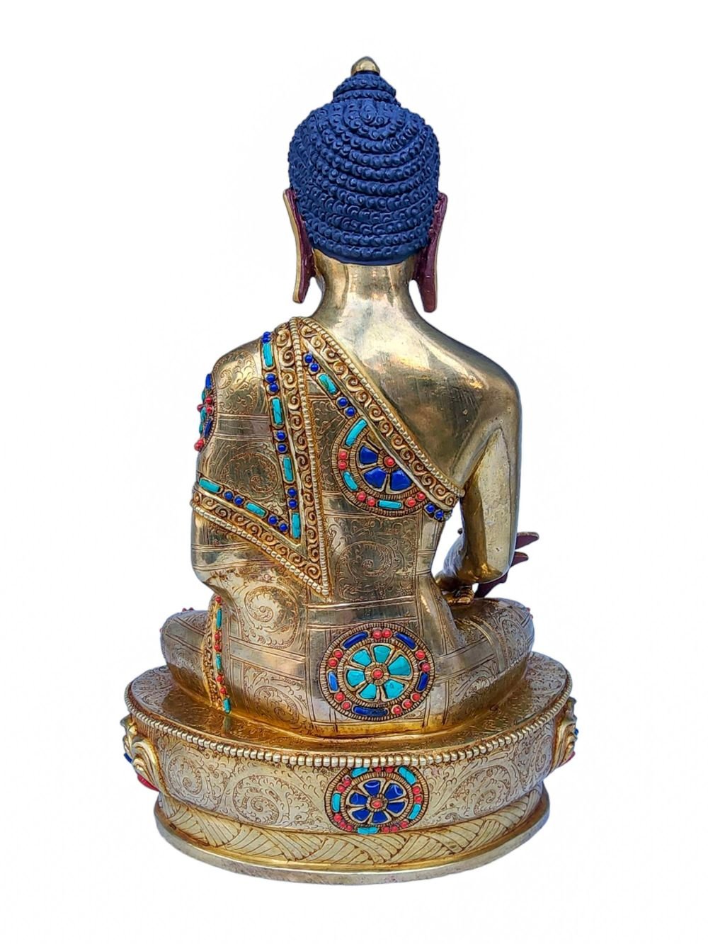 Medicine Buddha, Buddhist Handmade Statue, Face Painted, Gold Plated and Stone Setting , Healer of physical and spiritual ailments, bringer of health and peace