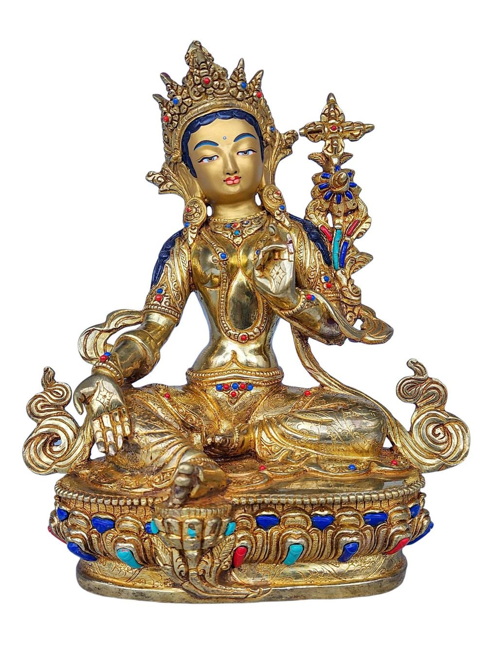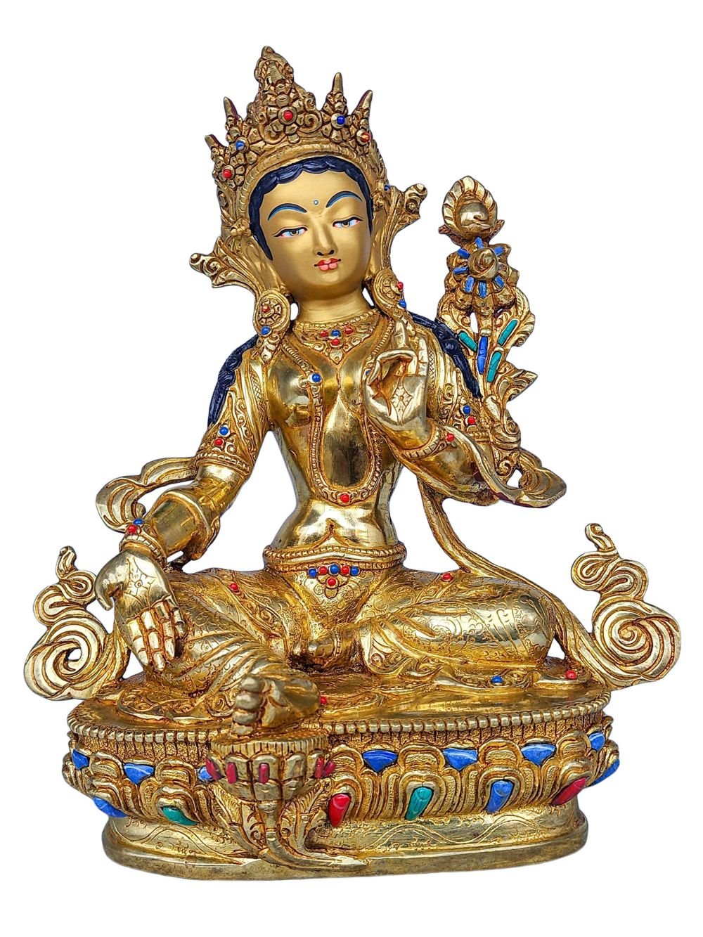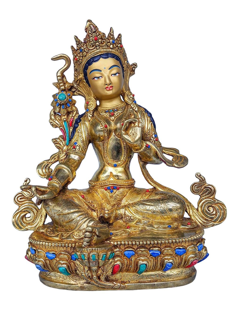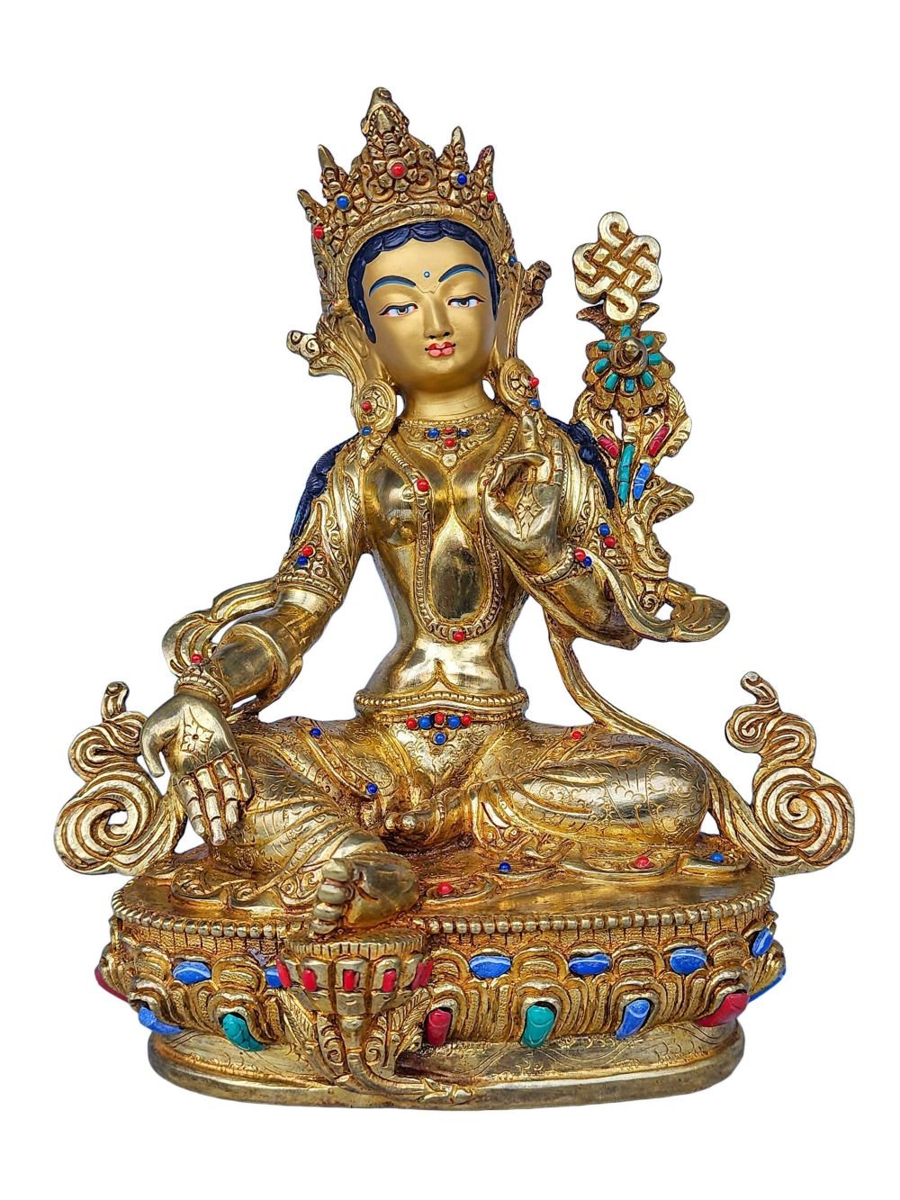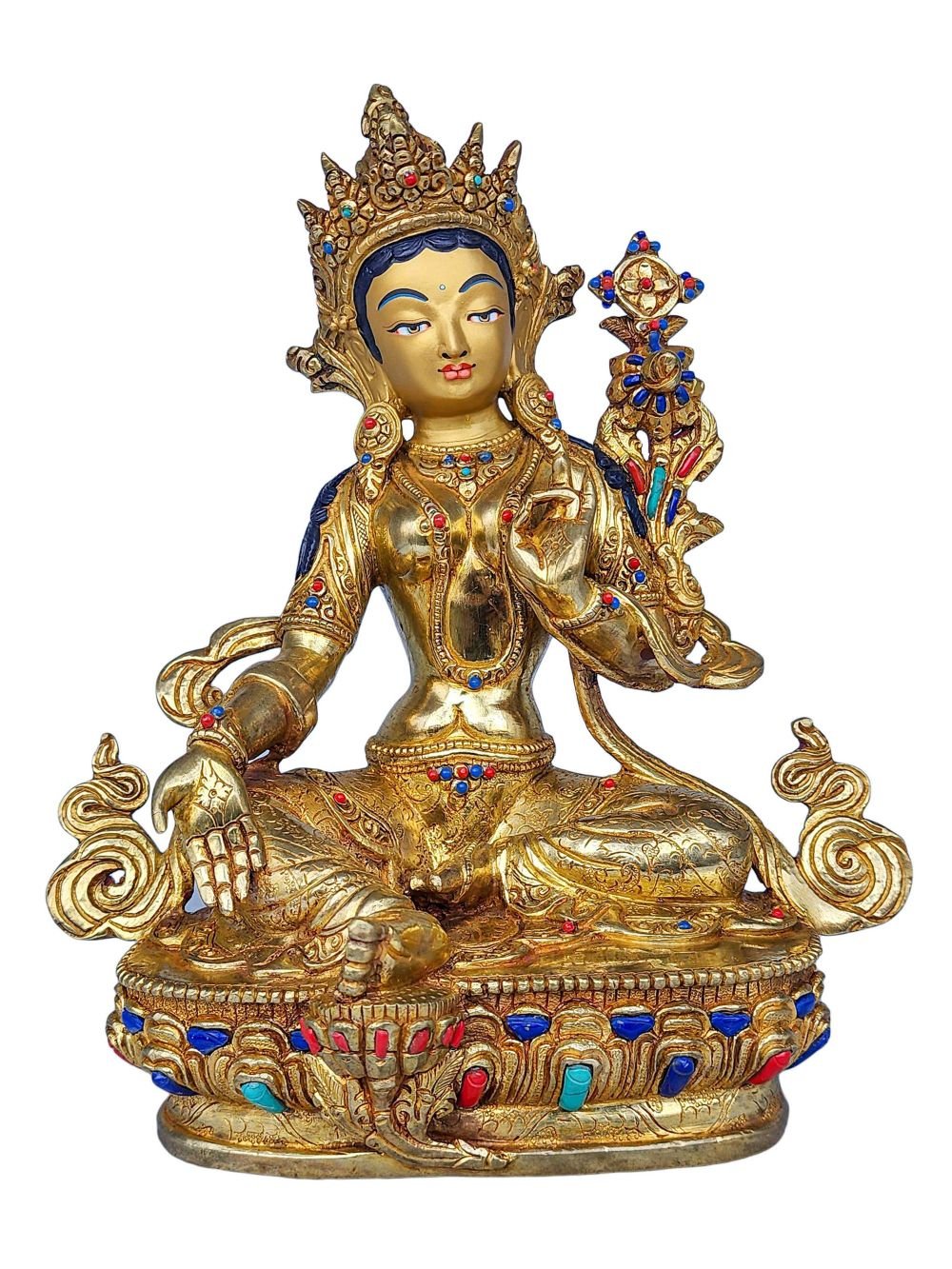 21 Tara SET, Buddhist Handmade Statue, Face Painted, Gold Plated and Stone Setting , Divine Manifestations of Protection, Compassion, and Healing