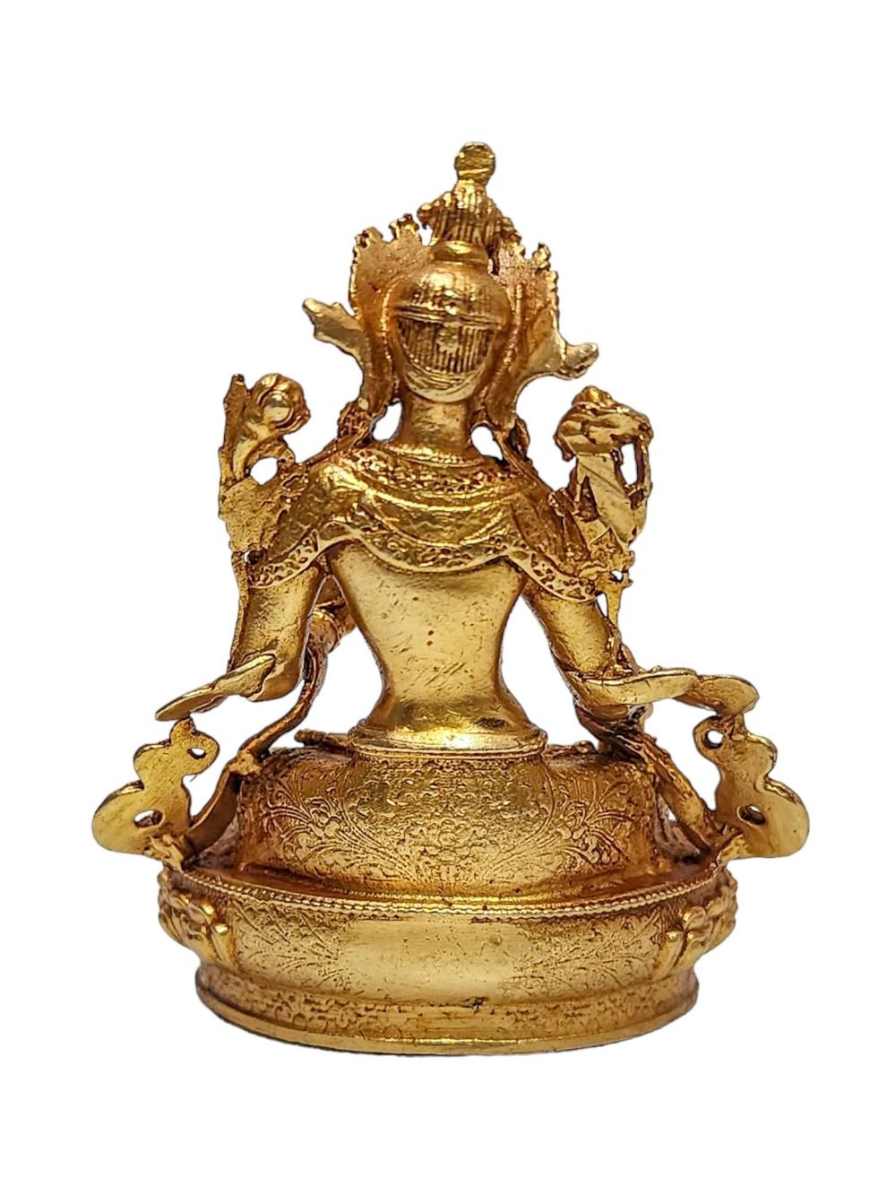 Buddhist Miniature Statue of White Tara, Gold Plated , Goddess of longevity, healing, and serene compassion