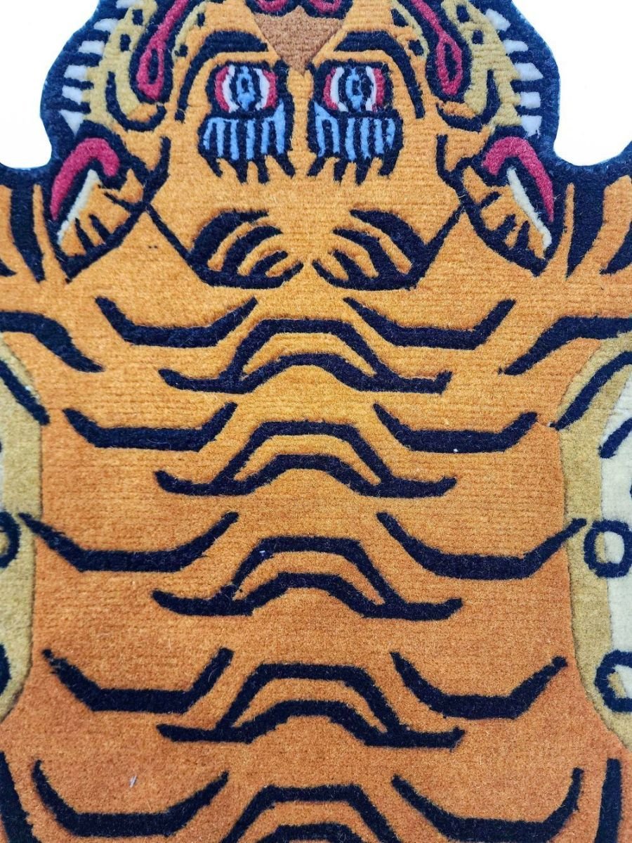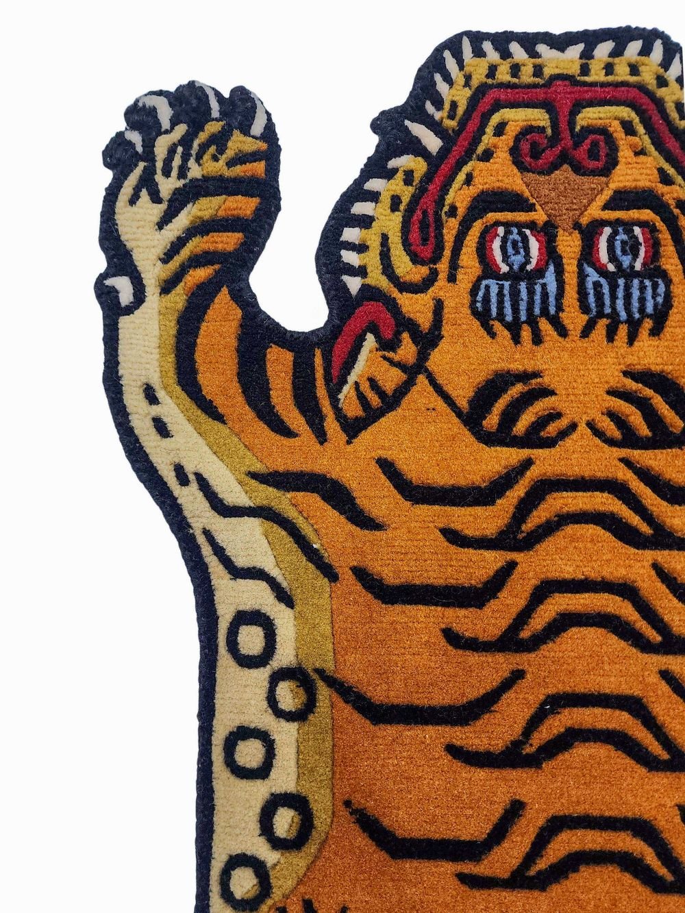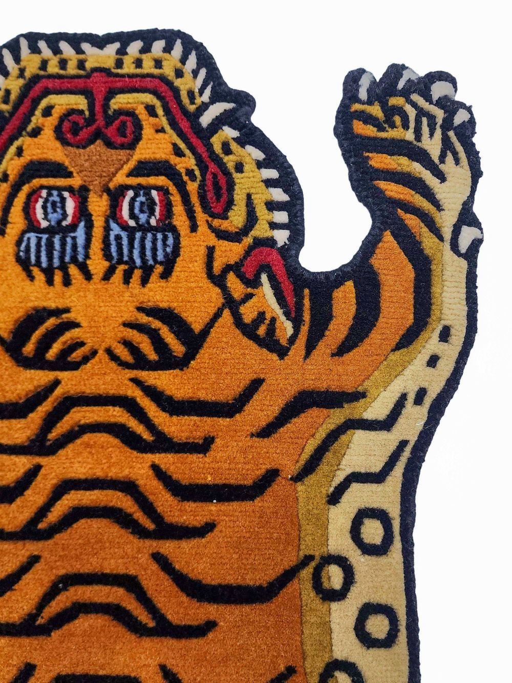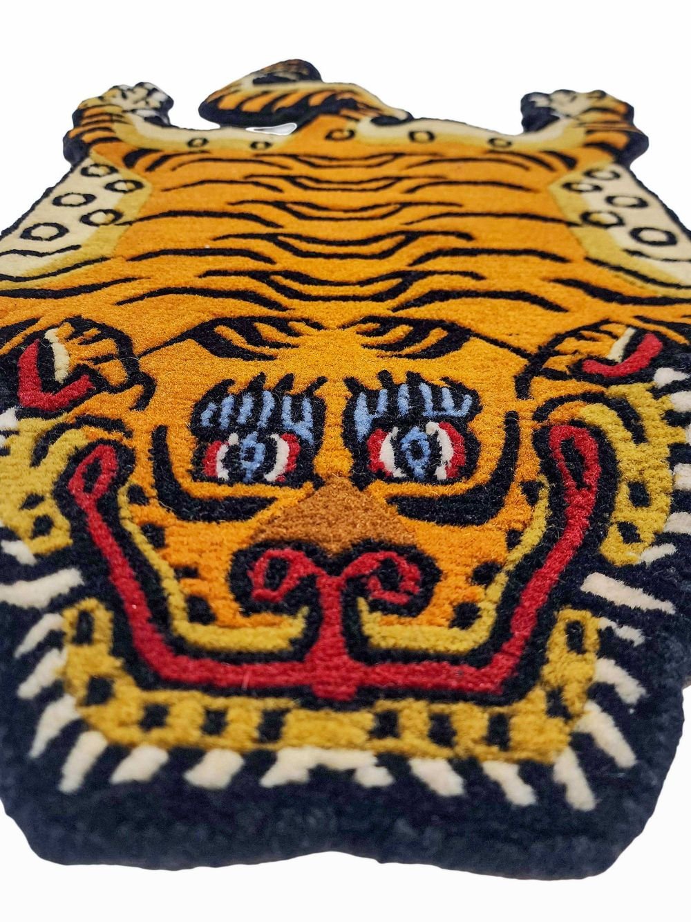 Handwoven Tiger Design Rug From Nepal, Extra Small Size |