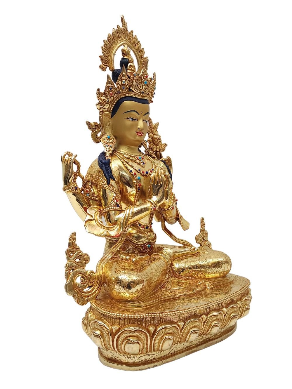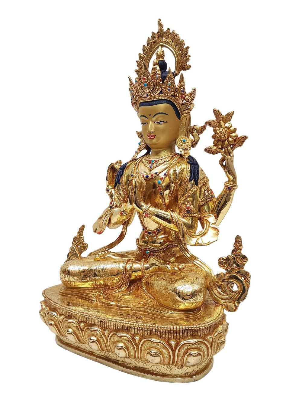 Chenrezig, Buddhist Handmade Statue, Face Painted, Stone Setting and Gold Plated , Bodhisattva of Compassion, Protector of All Beings