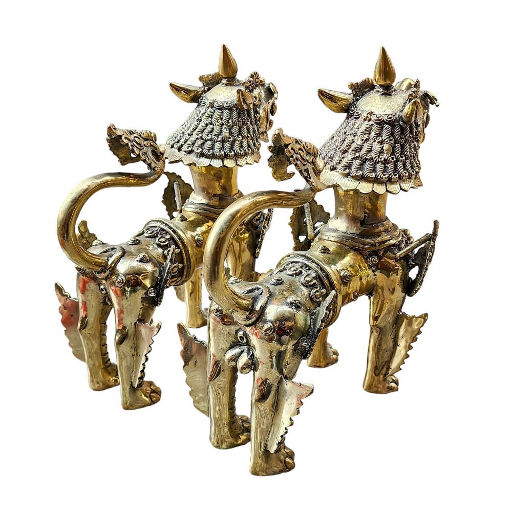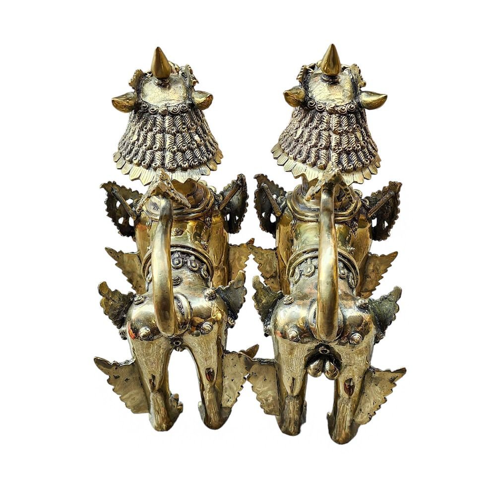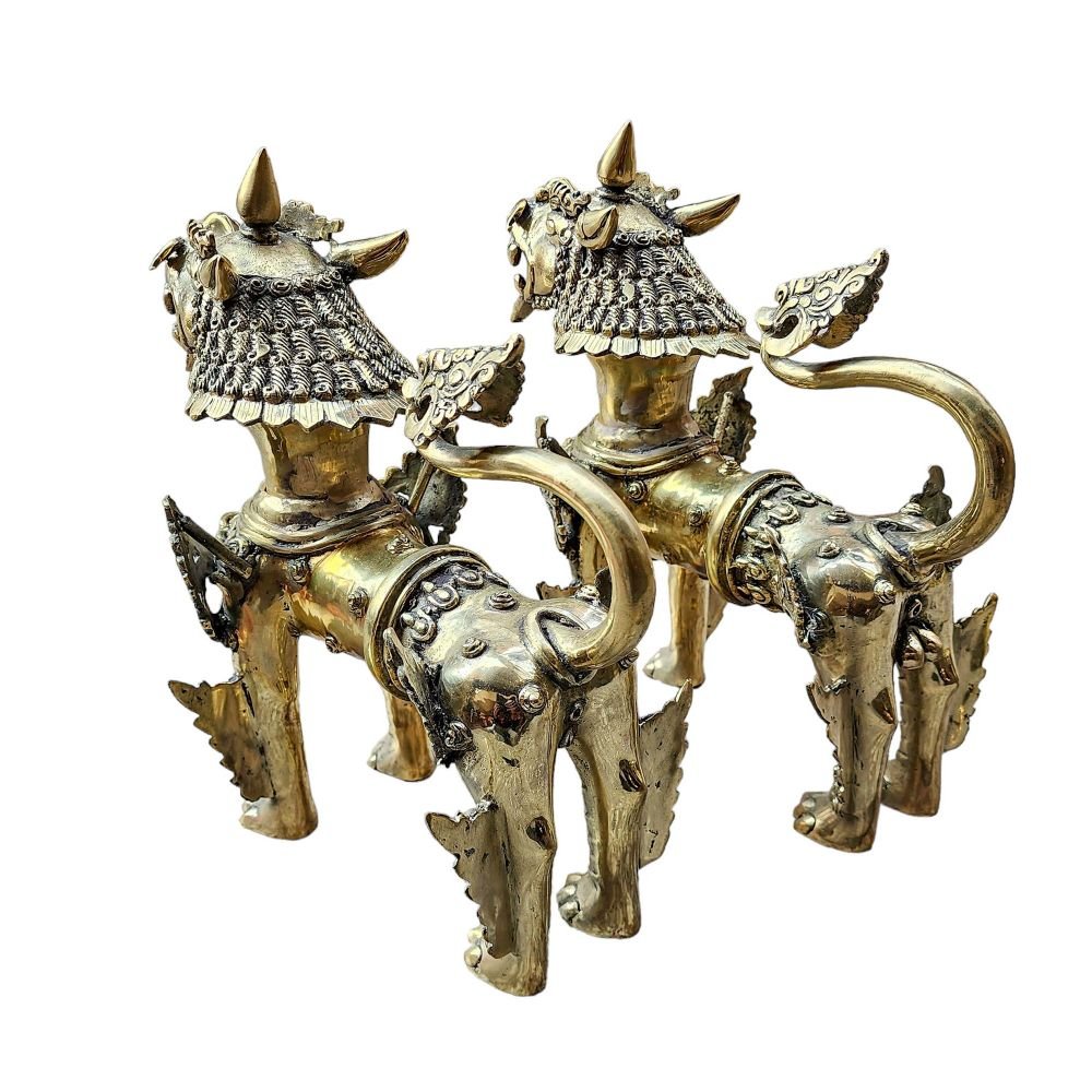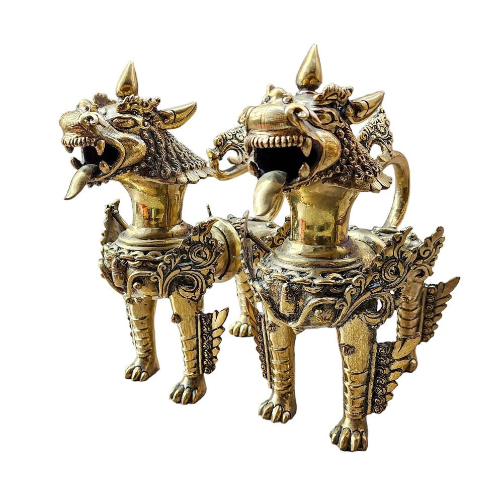 Temple Lion Pair, Buddhist Statue, Sand Casting , A guardian statue often placed at temple entrances, symbolizing protection and strength