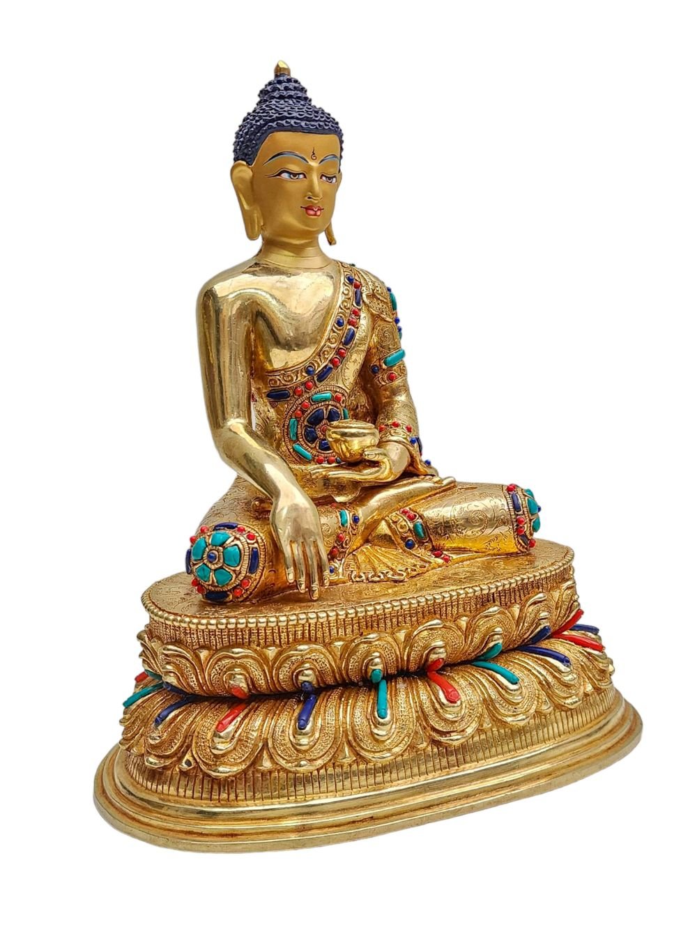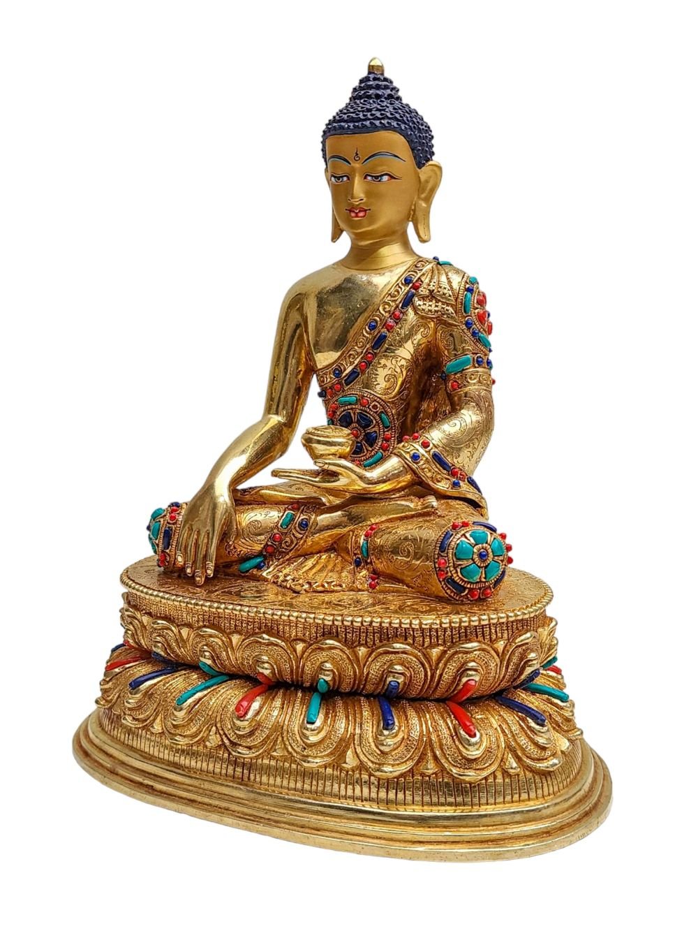 Shakyamuni Buddha, Buddhist Handmade Statue, Face Painted, Stone Setting and Gold Plated , The Enlightened One and Teacher of Humanity