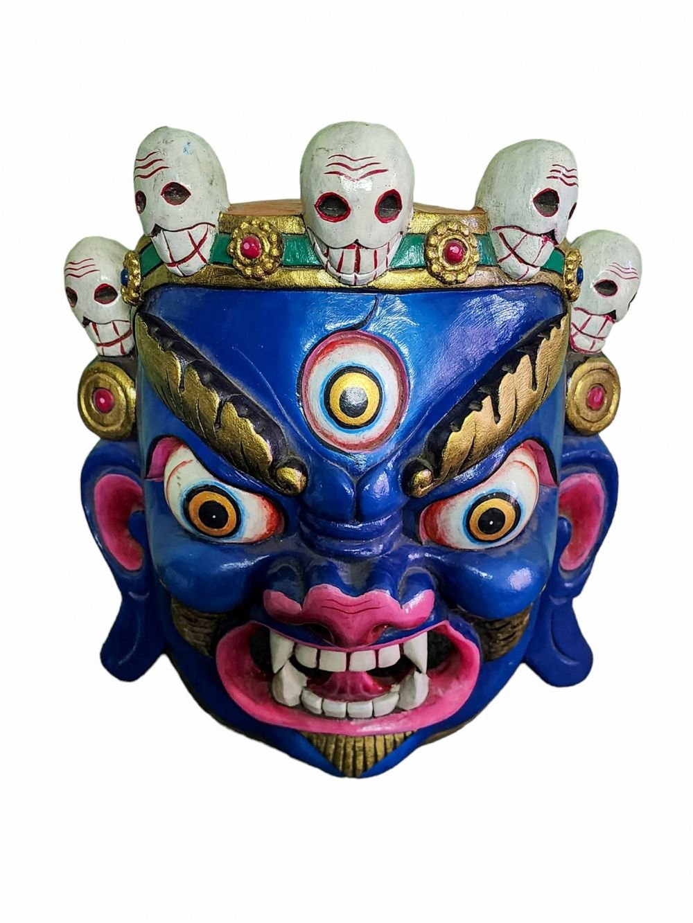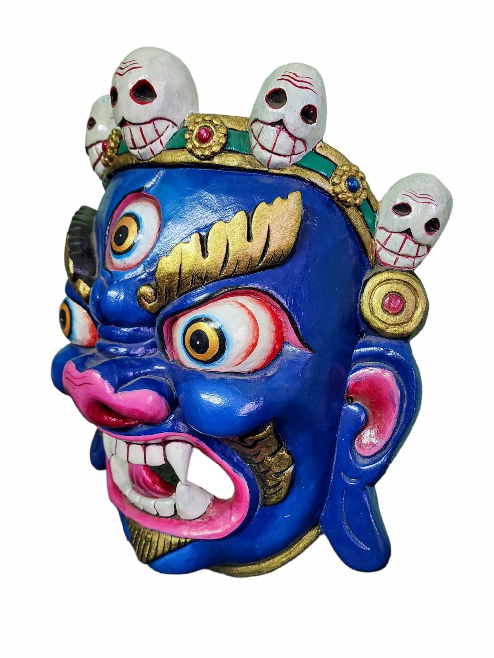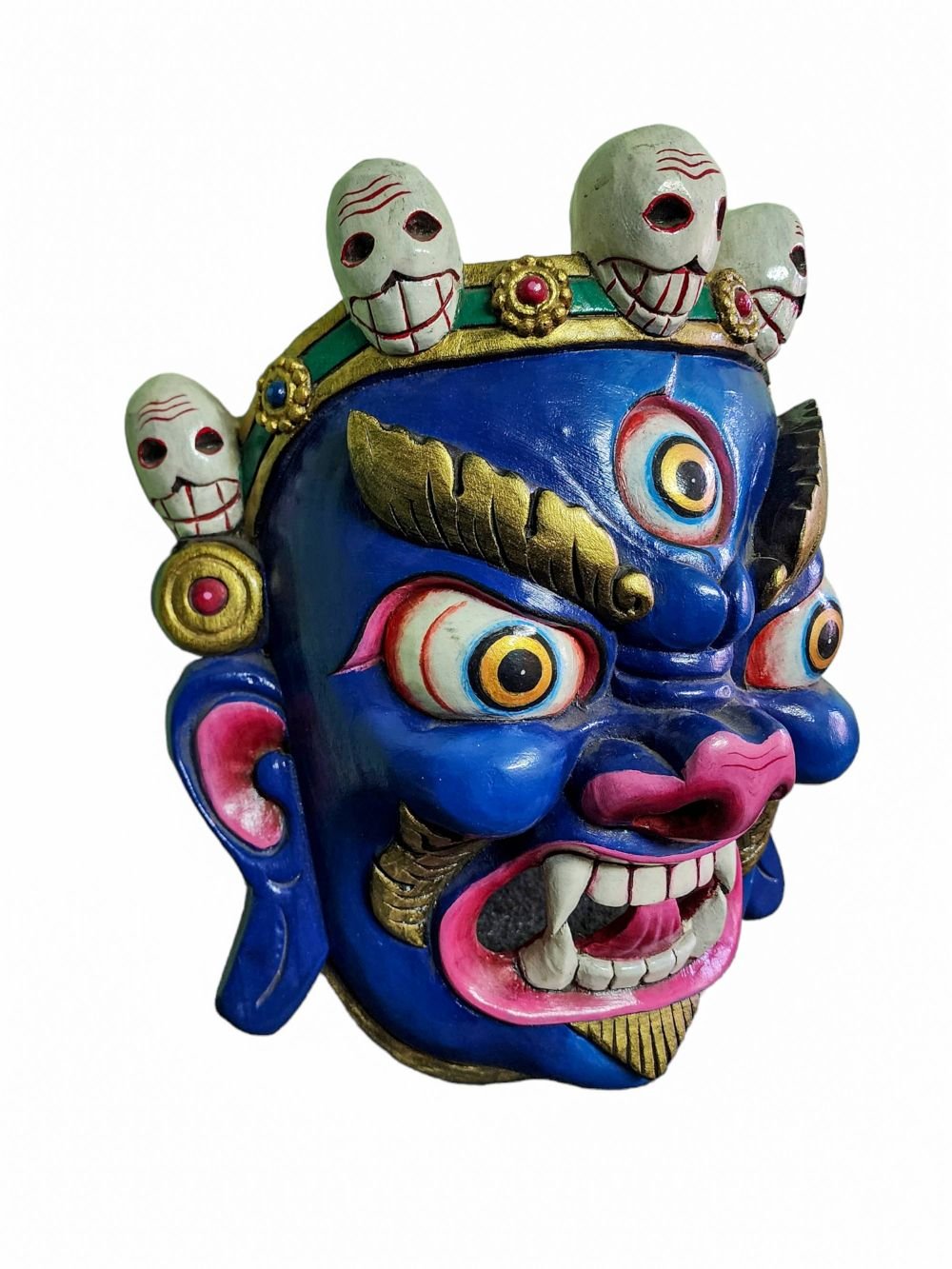 Bhairab, Handmade Wooden Mask, Painted, High Quality, Mahakala Black , Fierce protector, destroys obstacles, guards the Dharma