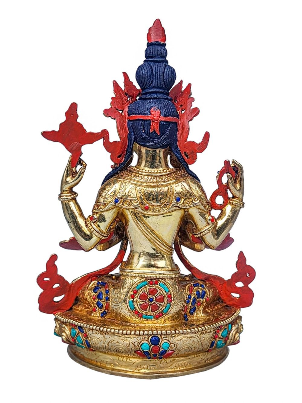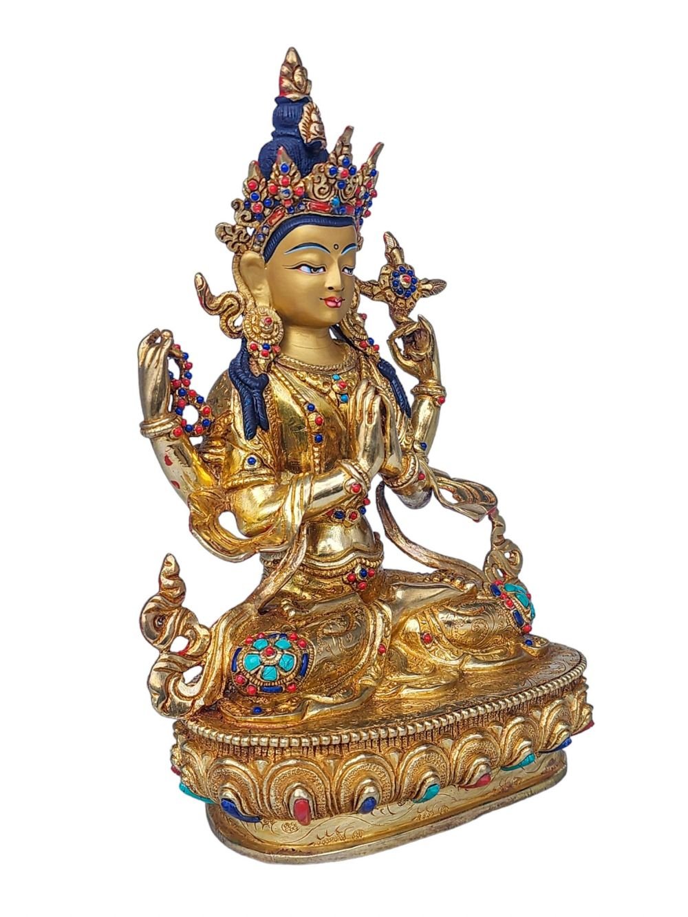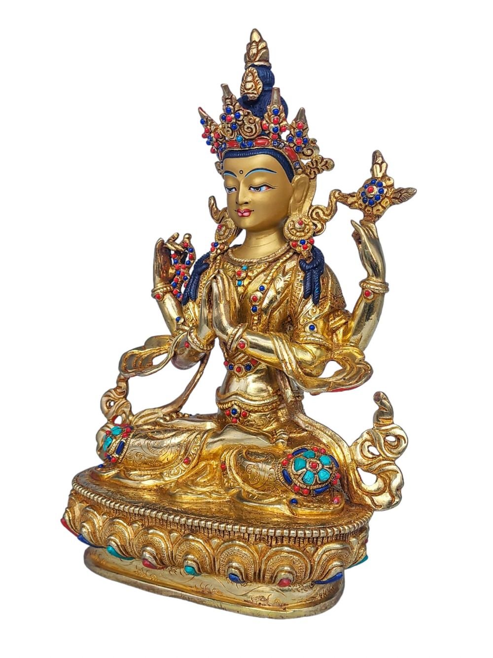 Chenrezig, Buddhist Handmade Statue, Face Painted, Stone Setting and Gold Plated , Bodhisattva of Compassion, Protector of All Beings