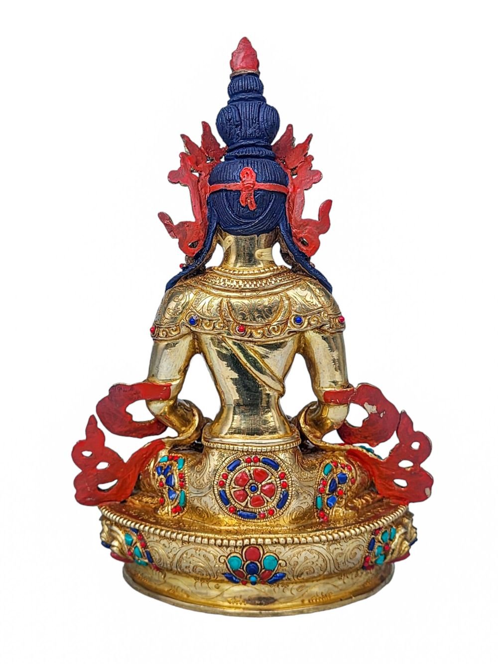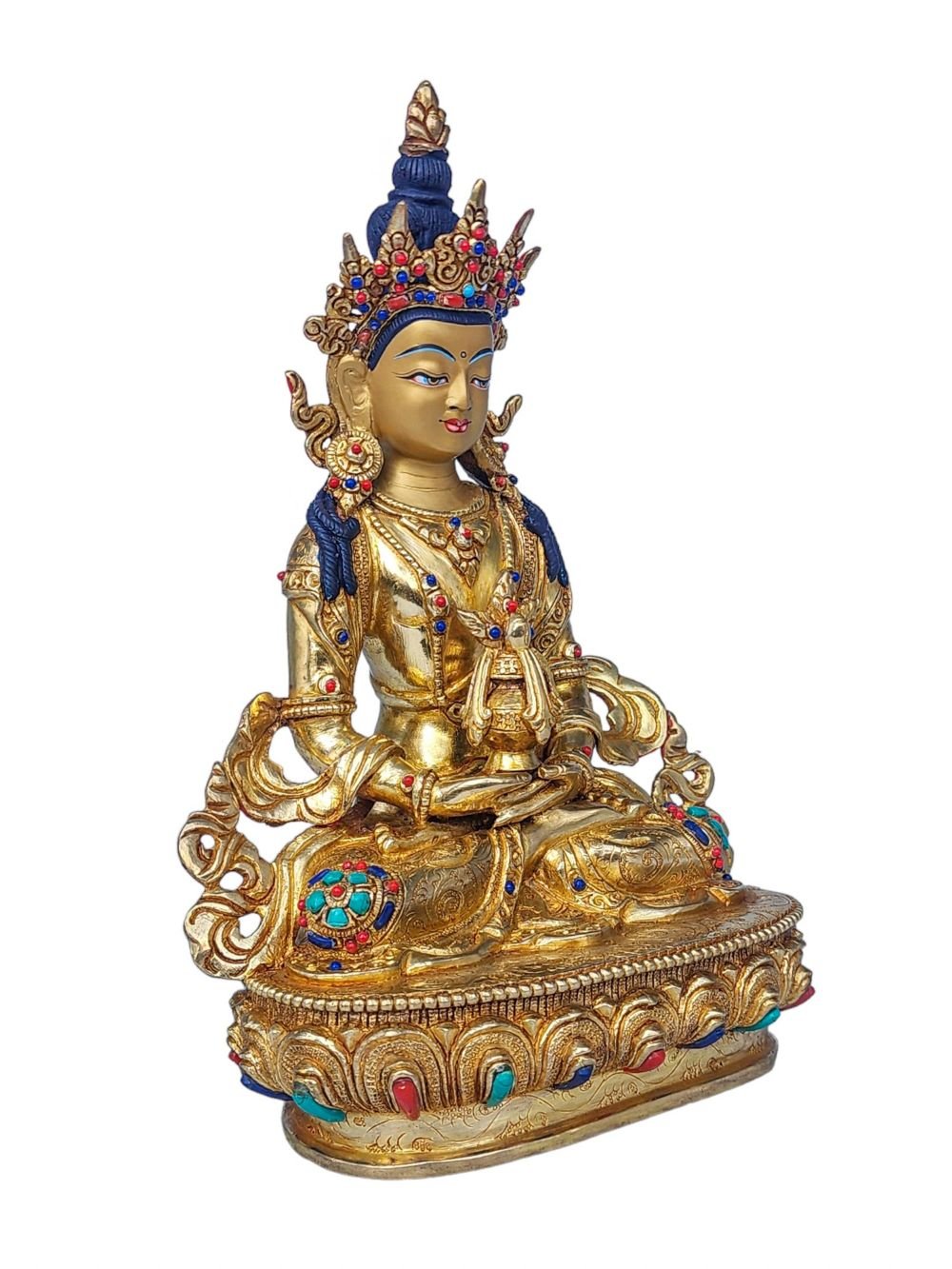 Aparimita, Buddhist Handmade Statue, Face Painted, Stone Setting and Gold Plated , Buddha of Long Life, Wisdom, and Spiritual Vitality