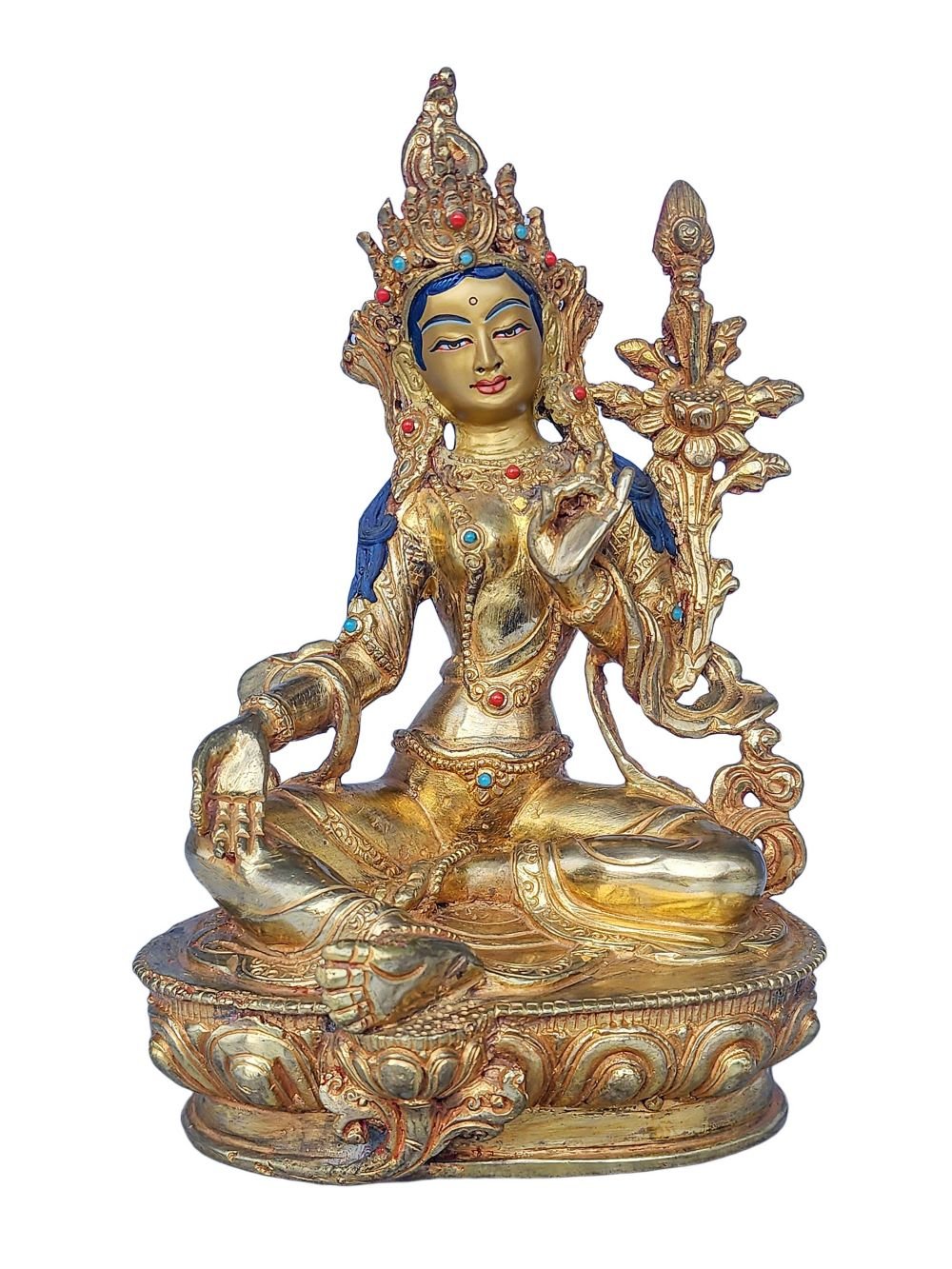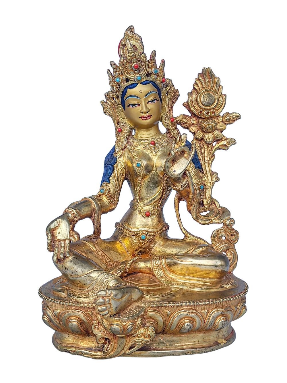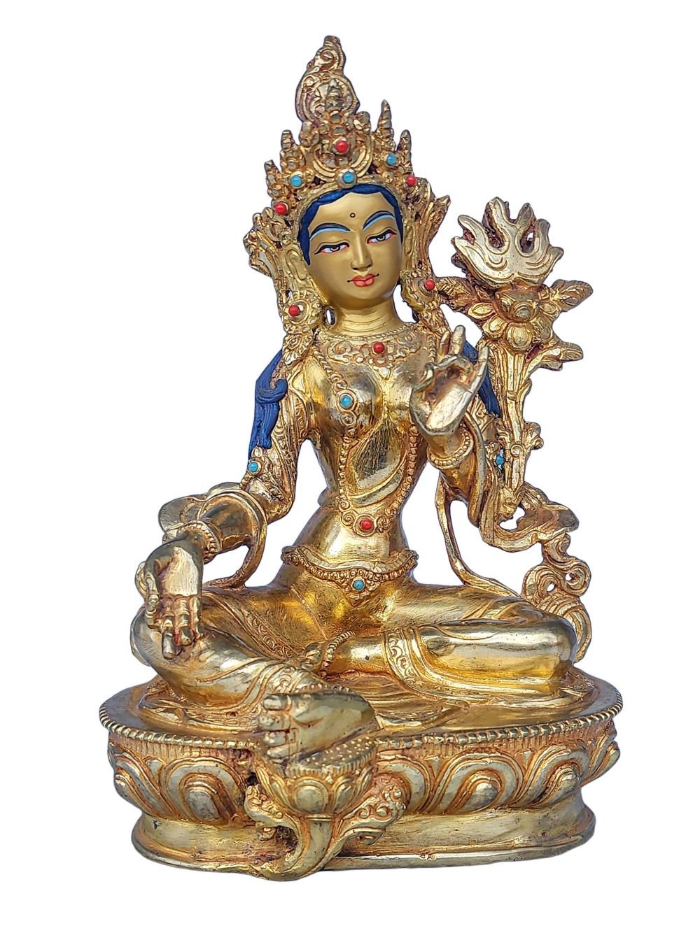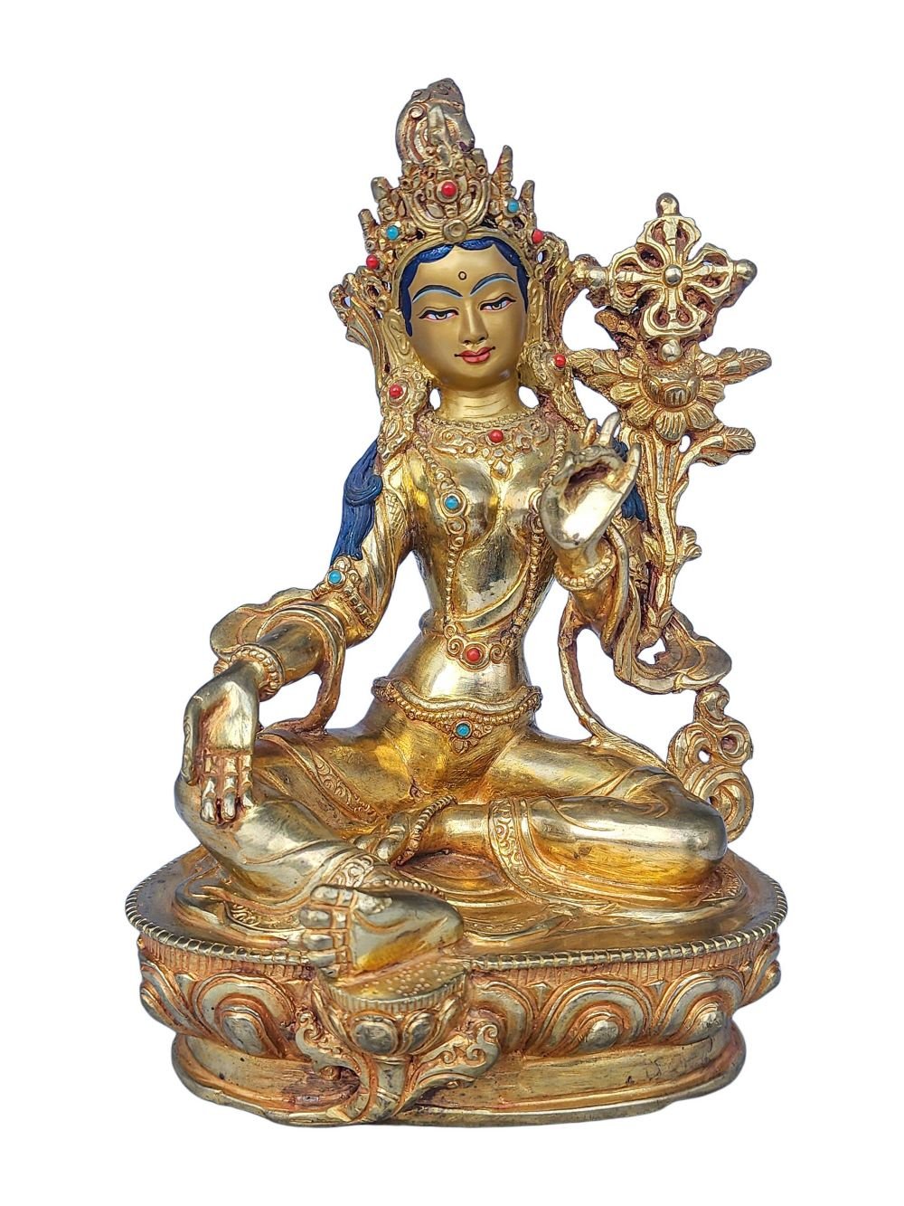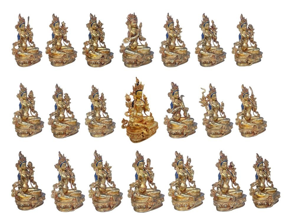 21 Tara Set, Buddhist Handmade Statue, Face Painted, Stone Setting and Gold Plated , Divine Manifestations of Protection, Compassion, and Healing