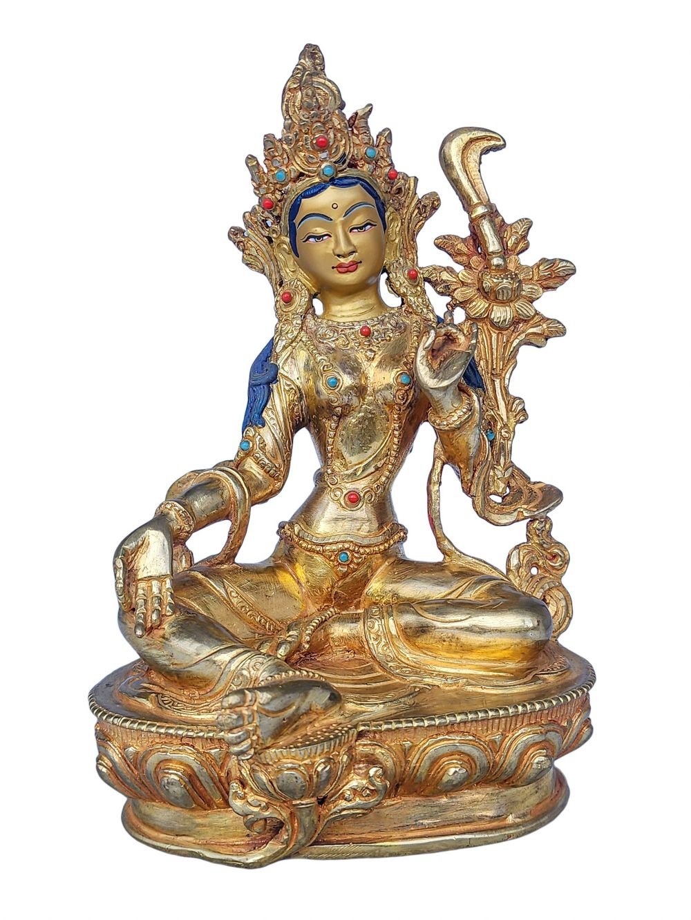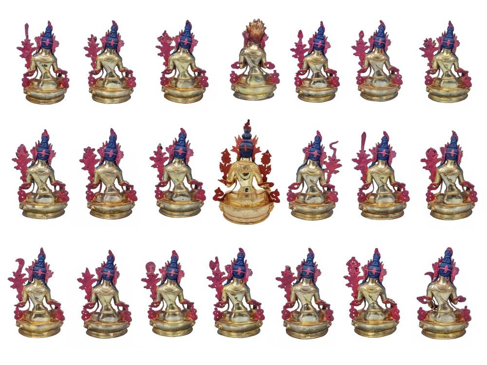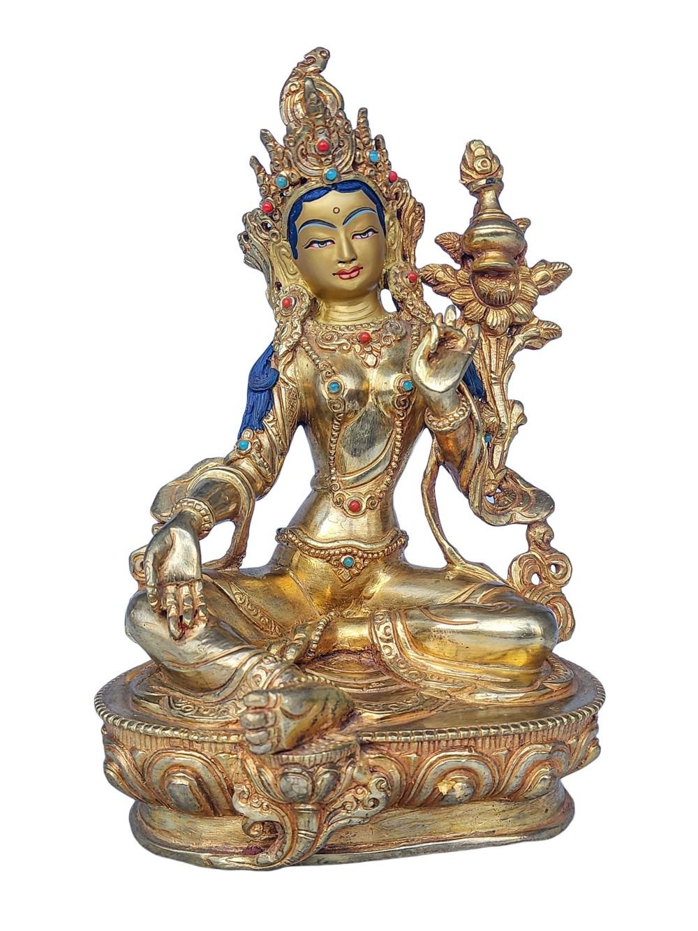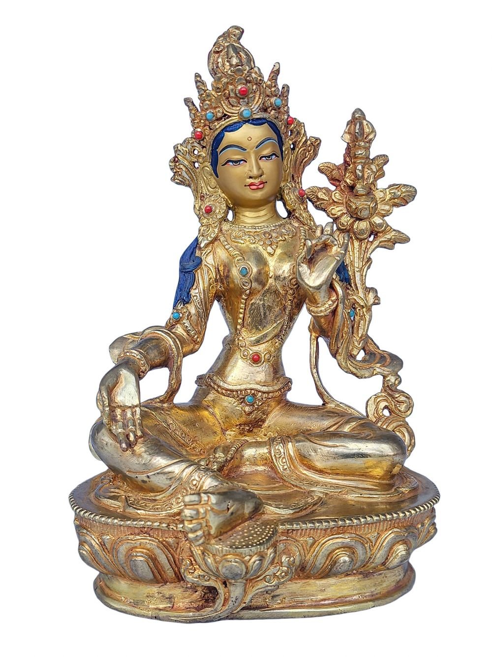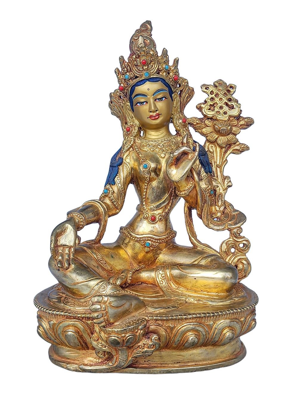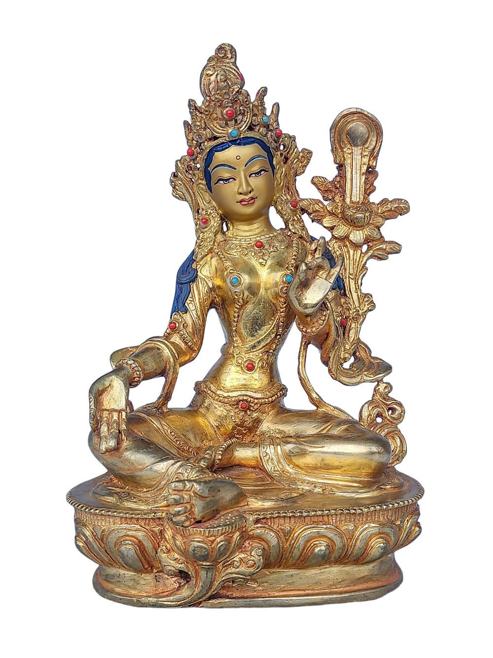 21 Tara Set, Buddhist Handmade Statue, Face Painted, Stone Setting and Gold Plated , Divine Manifestations of Protection, Compassion, and Healing