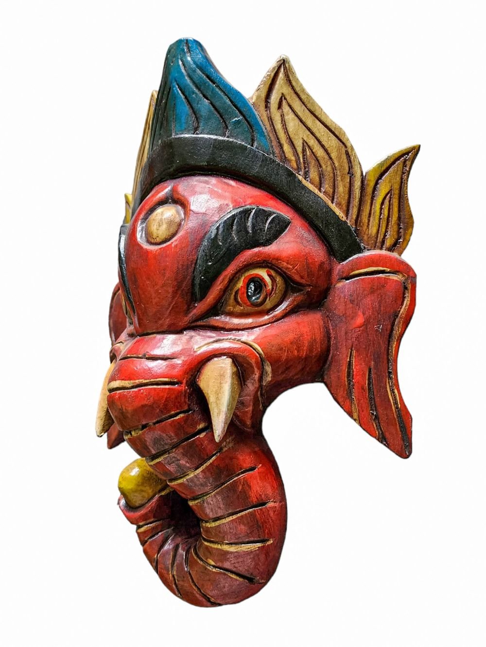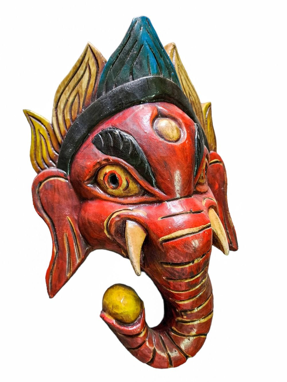 Ganesh Mask, Handmade Wooden Mask, Wall Hanging, Painted Red, Poplar Wood , Remover of Obstacles, God of Wisdom and New Beginnings