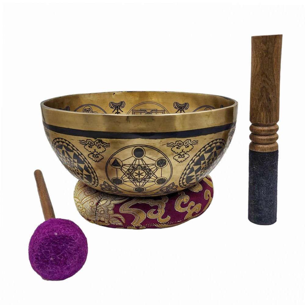 Singing Bowl, Buddhist Hand Beaten, with Fine Etching Carvin of Om, Select Accessories |