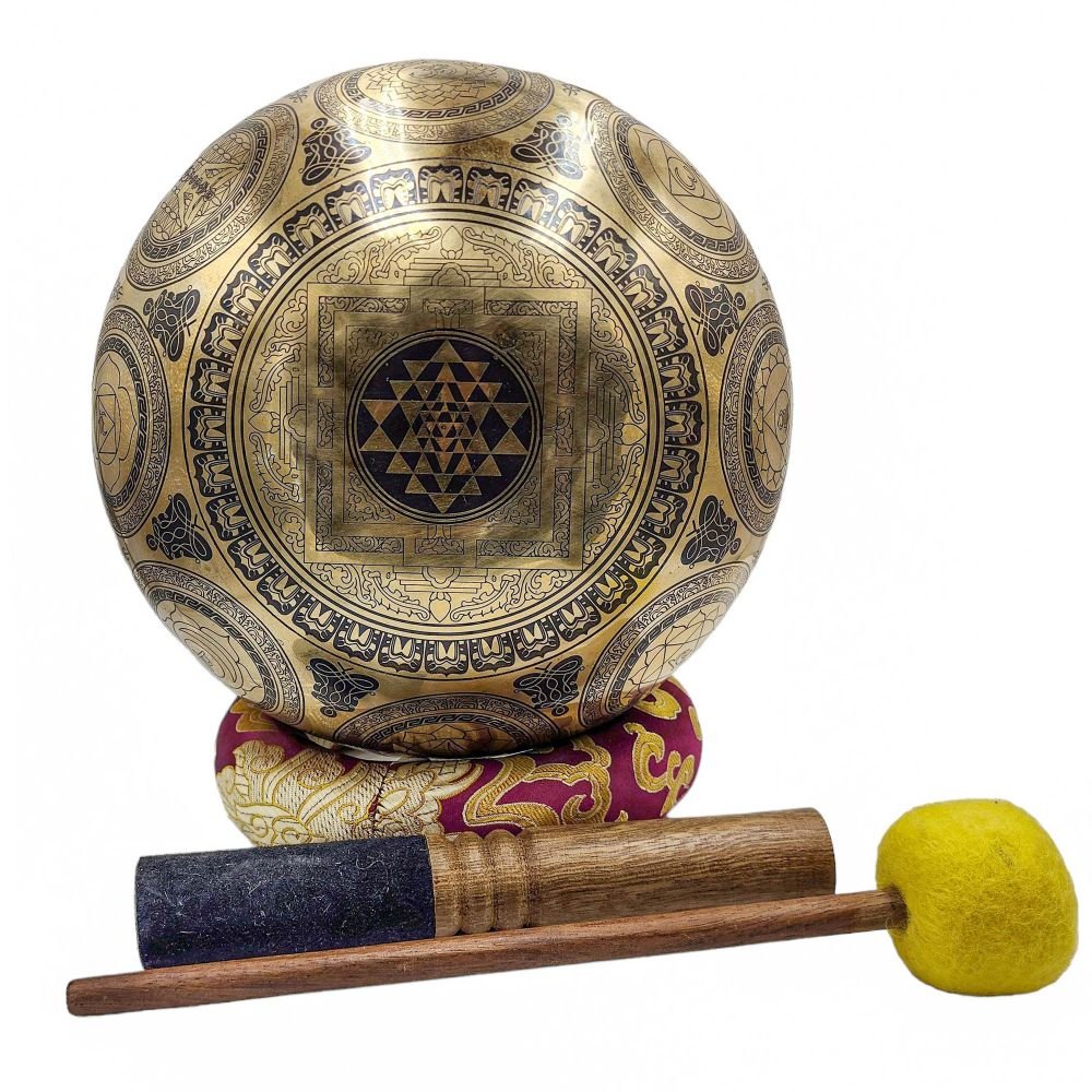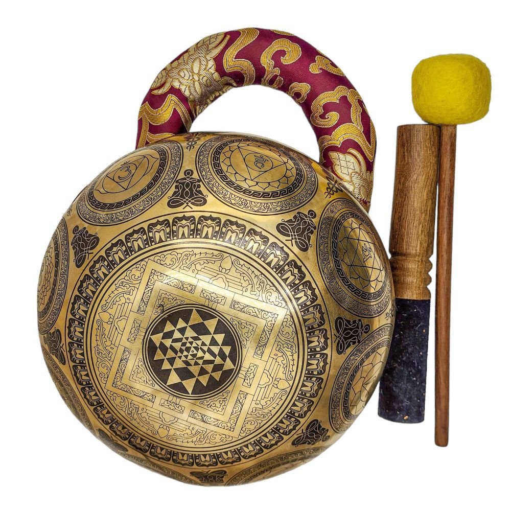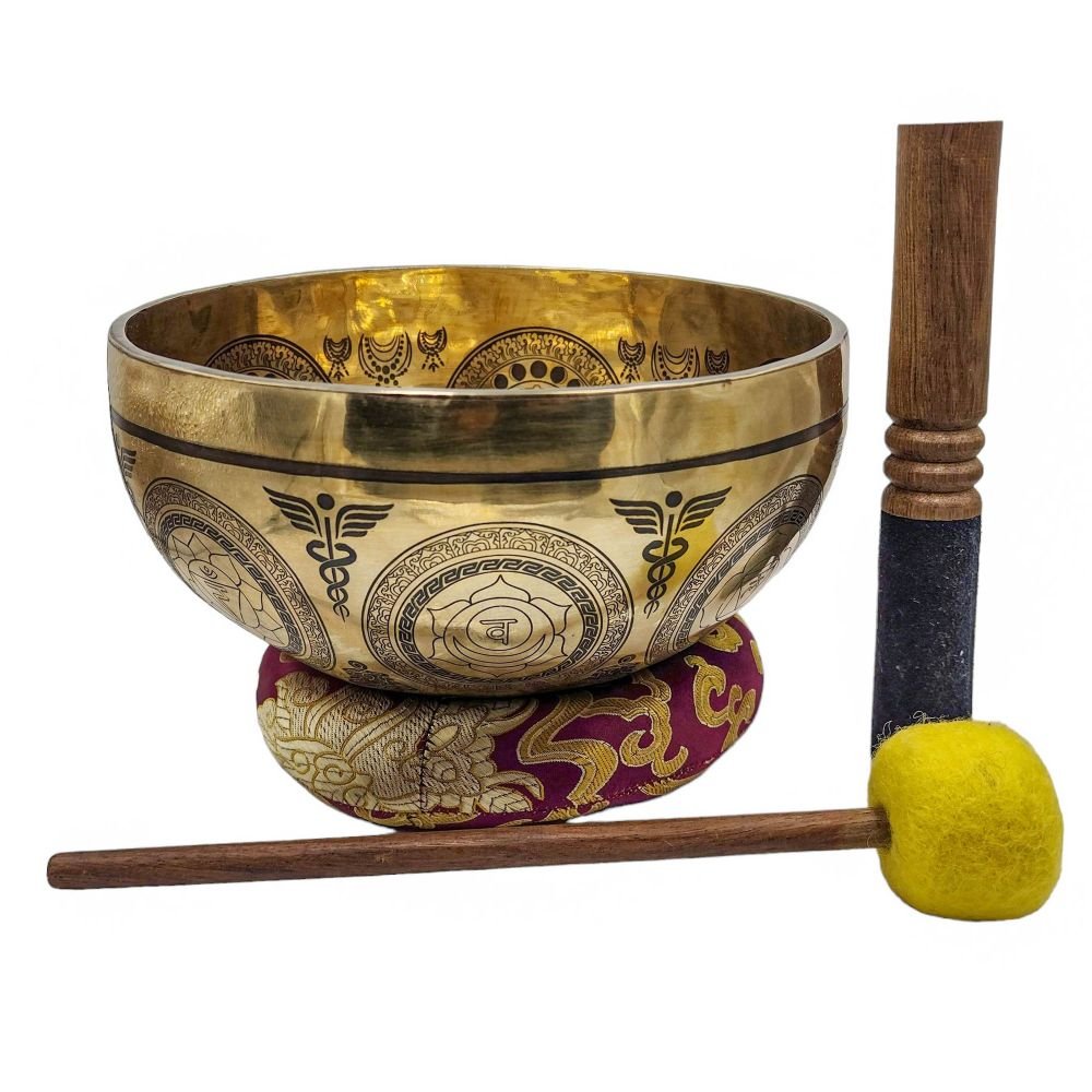 Singing Bowl, Buddhist Hand Beaten, with Fine Etching Carving, Select Accessories |