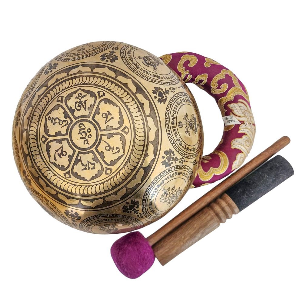 Singing Bowl, Buddhist Hand Beaten, with Fine Etching Carving, Select Accessories |