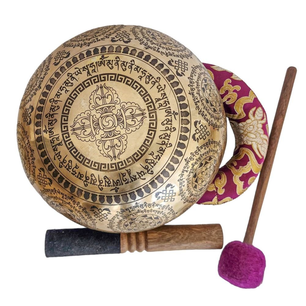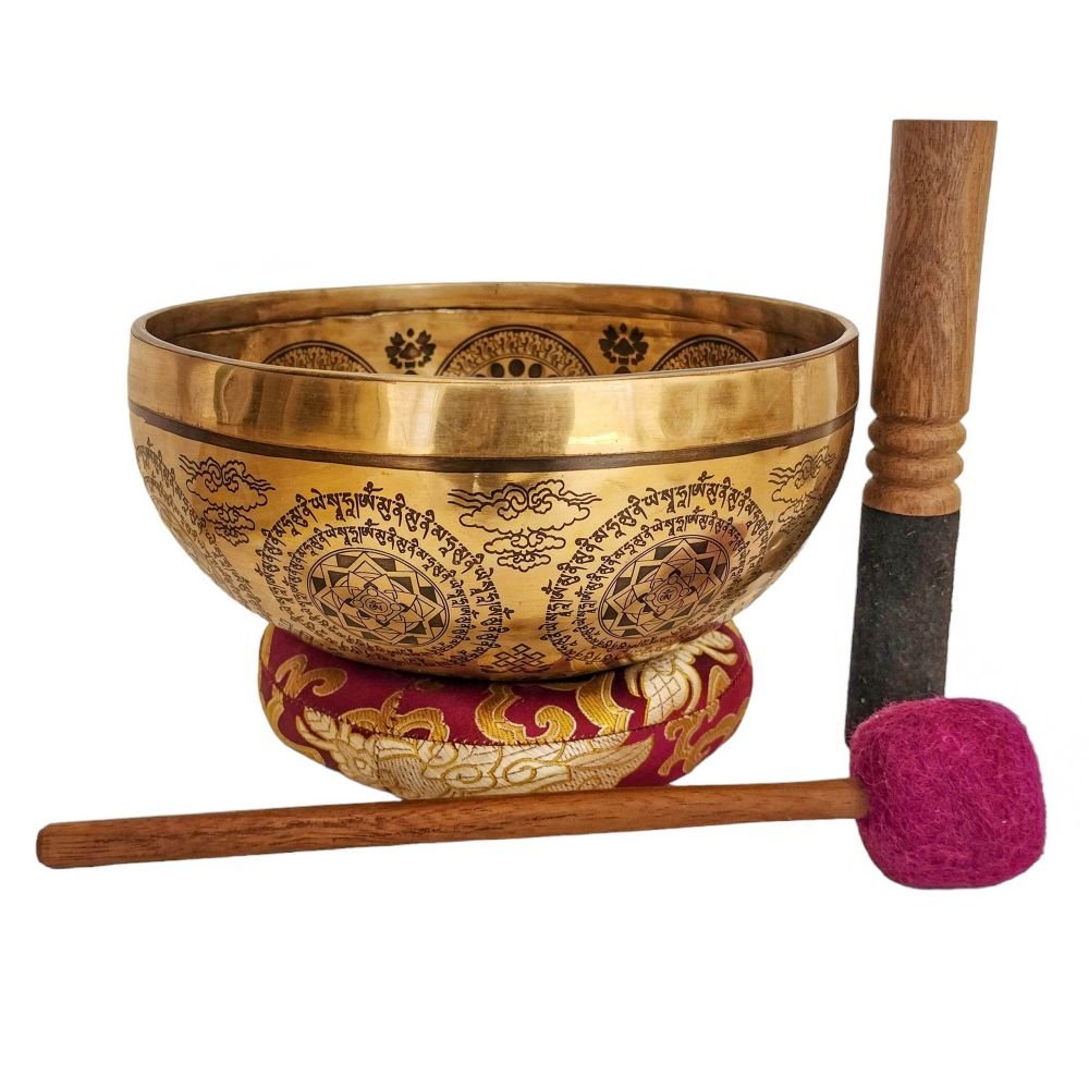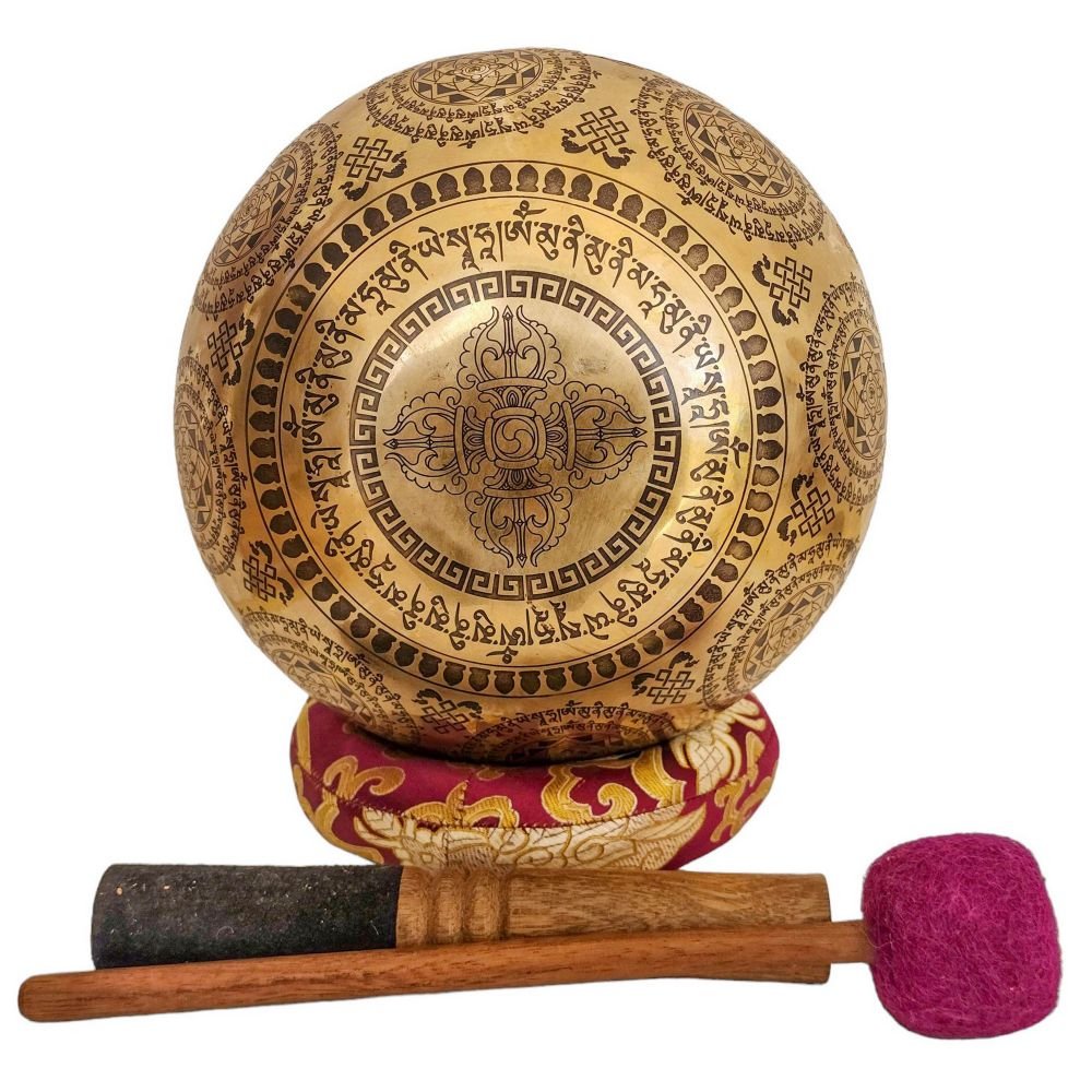 Singing Bowl, Buddhist Hand Beaten, with Fine Etching Carving of Samadhi, Select Accessories |