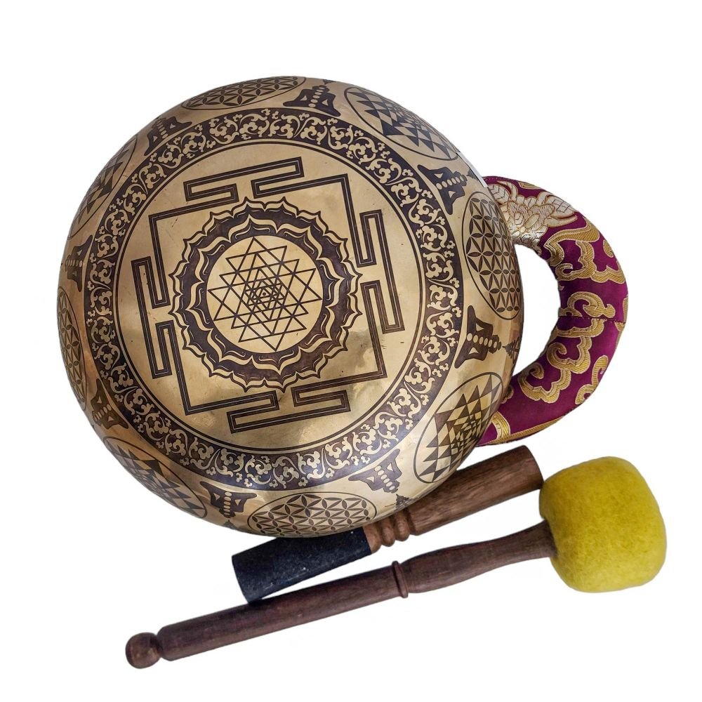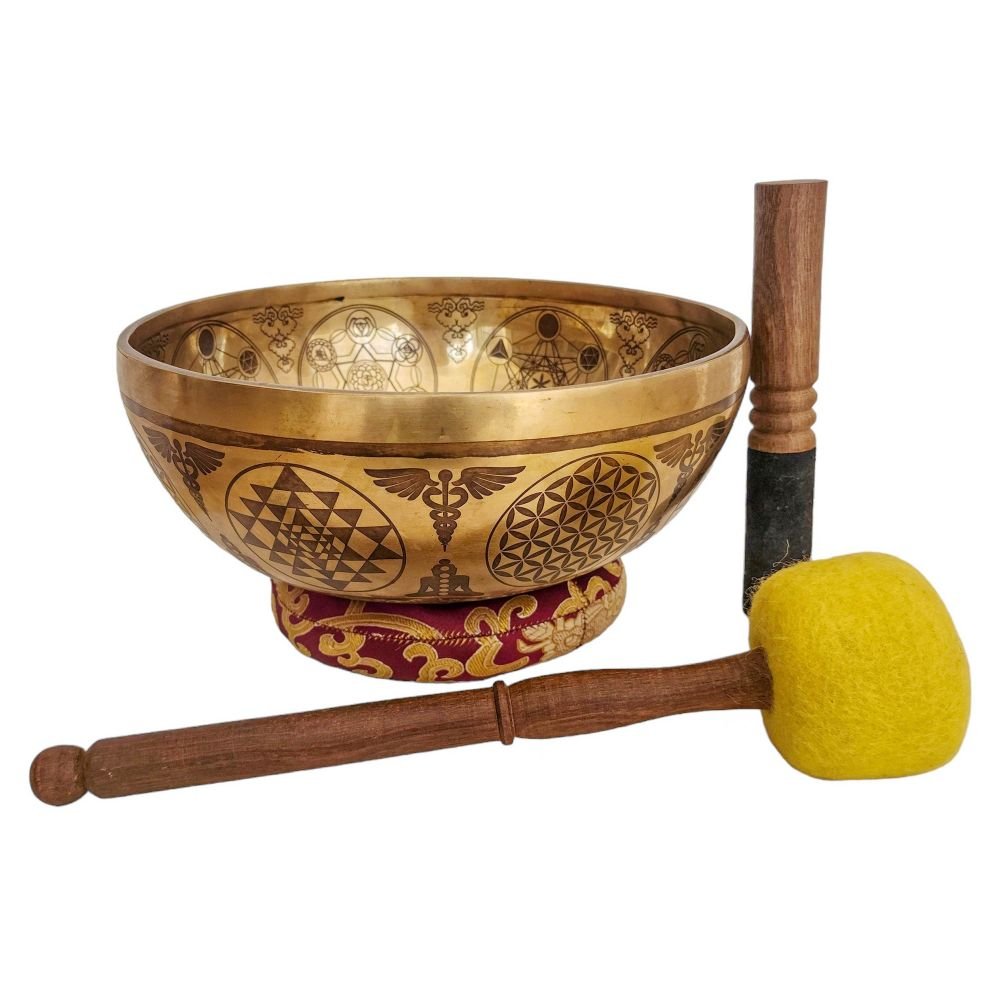 Singing Bowl, Buddhist Hand Beaten, with Fine Etching Carving, Select Accessories |