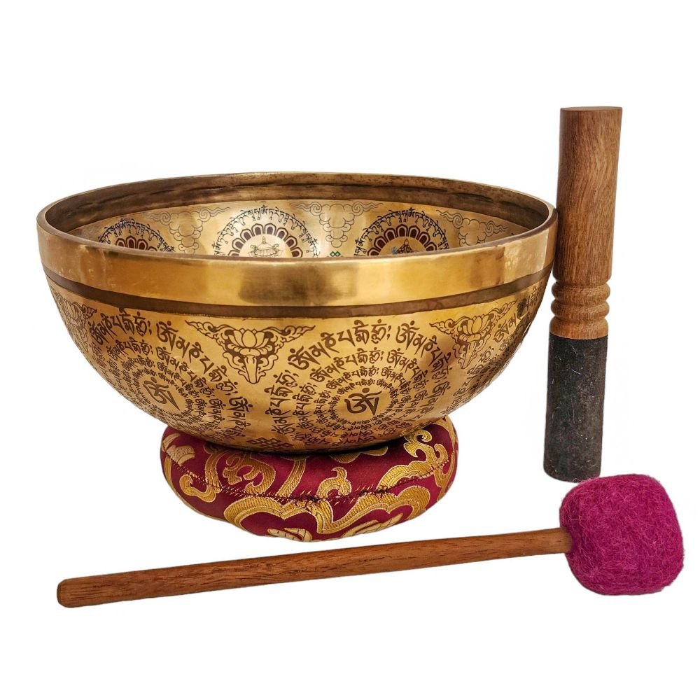 The Jambati Singing Bowl you are purchasing includes a cushion, a wooden playing mallet, and a felt-hitting mallet for playing the bowl. If you require additional accessories, you can browse the options above and purchase them separately. Should you have any further questions or need assistance, please don't hesitate to let us know. Read More