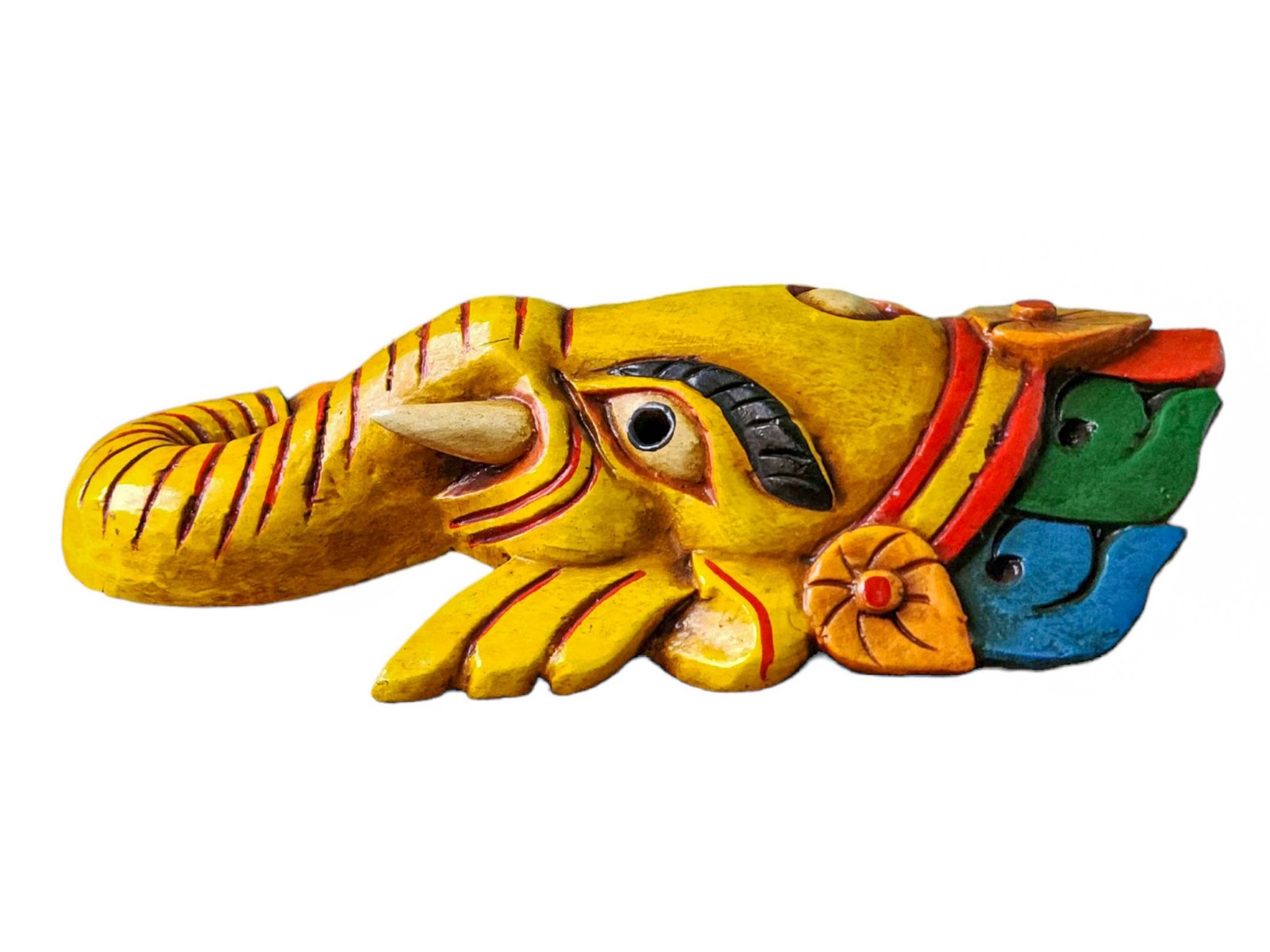Ganesh Mask, Handmade Wooden Mask, Wall Hanging, Painted, Poplar Wood , Remover of Obstacles, God of Wisdom and New Beginnings