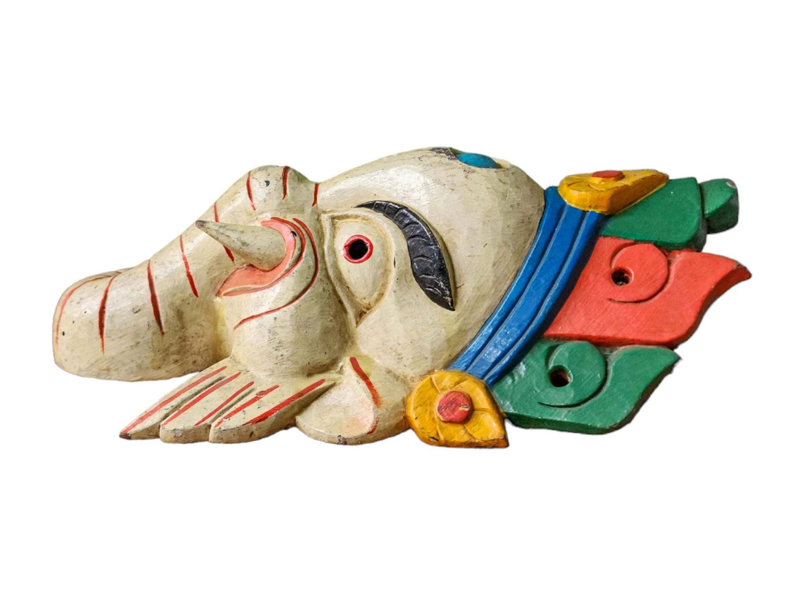 Ganesh Mask, Handmade Wooden Mask, Wall Hanging, Painted, Poplar Wood , Remover of Obstacles, God of Wisdom and New Beginnings