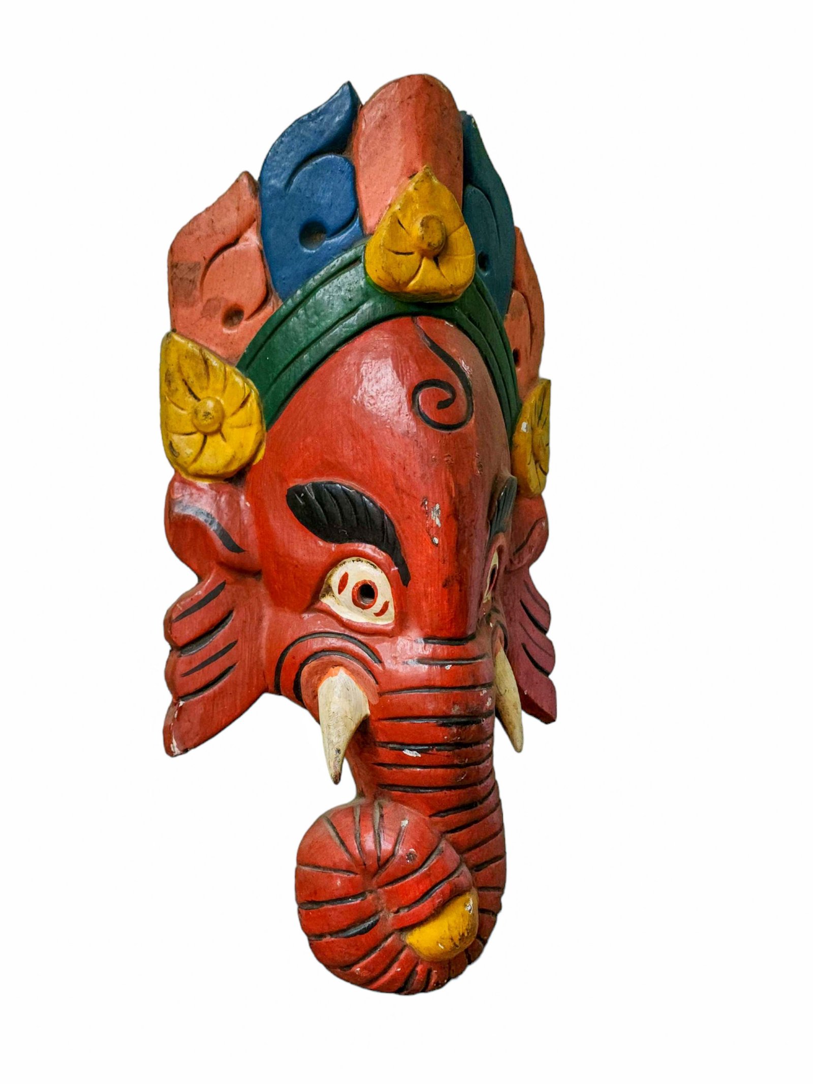 this Ganesh mask is Nepali handmade mask and we are Introducing our exquisite collection of Nepali handmade hand-carved wooden Buddhist masks and wall hangings, meticulously crafted by skilled artisans. Each piece in this collection reflects the rich cultural heritage and spiritual significance of Nepal. These masks and wall hangings are not just decorative pieces but hold deep symbolic meaning, making them perfect for adding an authentic touch to your living spaces or meditation rooms. Read More