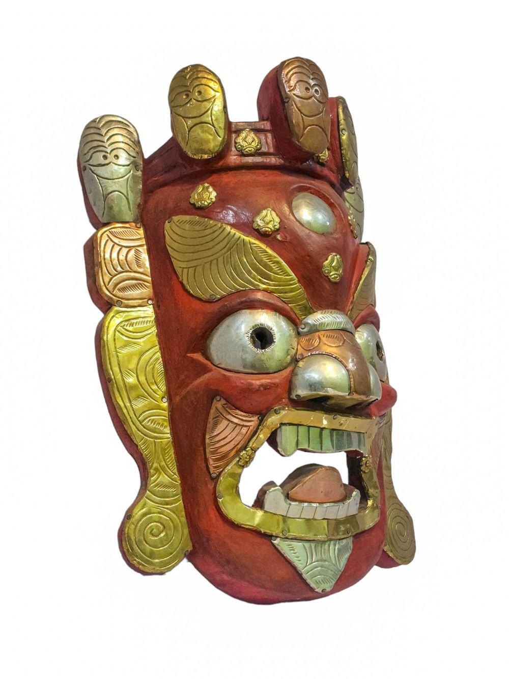 Bhairab, Handmade Wooden Mask, Wall Hanging, Painted, Poplar Wood , Fierce protector, destroys obstacles, guards the Dharma