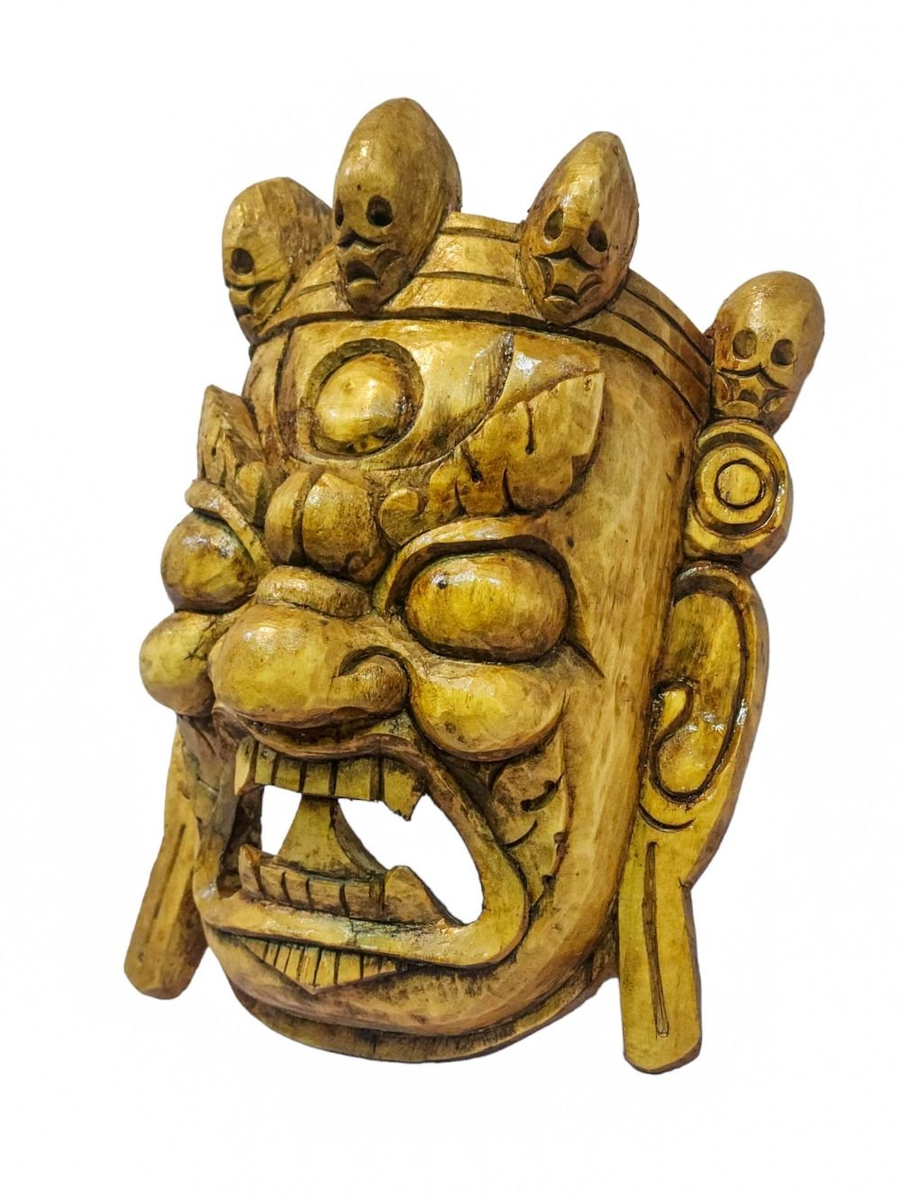 Bhairab, Handmade Wooden Mask, Wall Hanging, Painted, Poplar Wood , Fierce protector, destroys obstacles, guards the Dharma